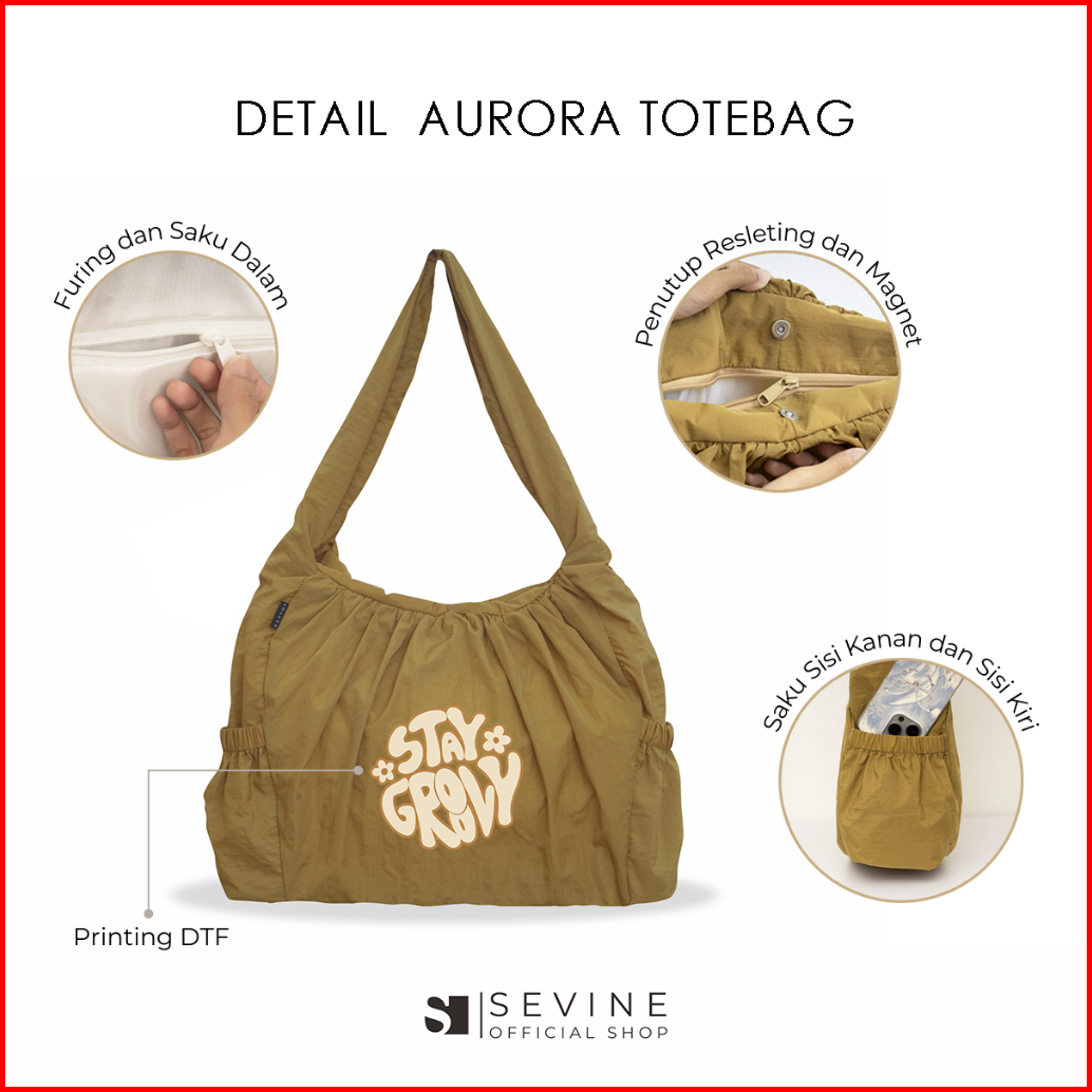 Sevine Aurora Totebag Sekolah Kuliah Tahan Air Tas Cewek Wanita Resleting Laptop - Aurora Polos