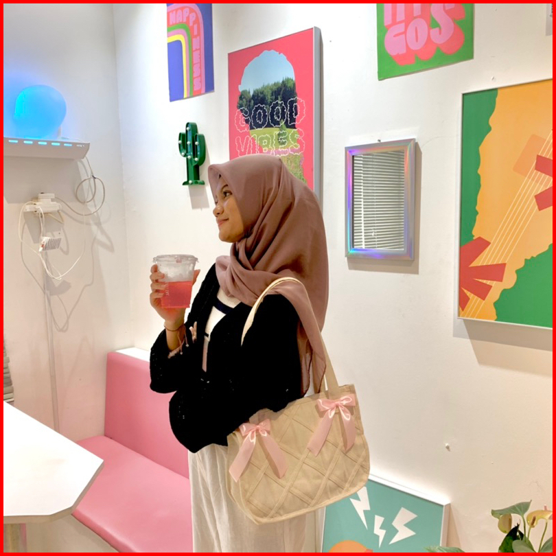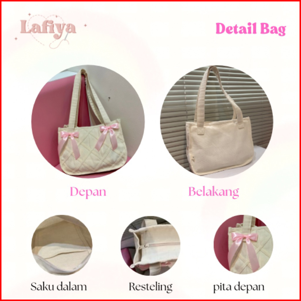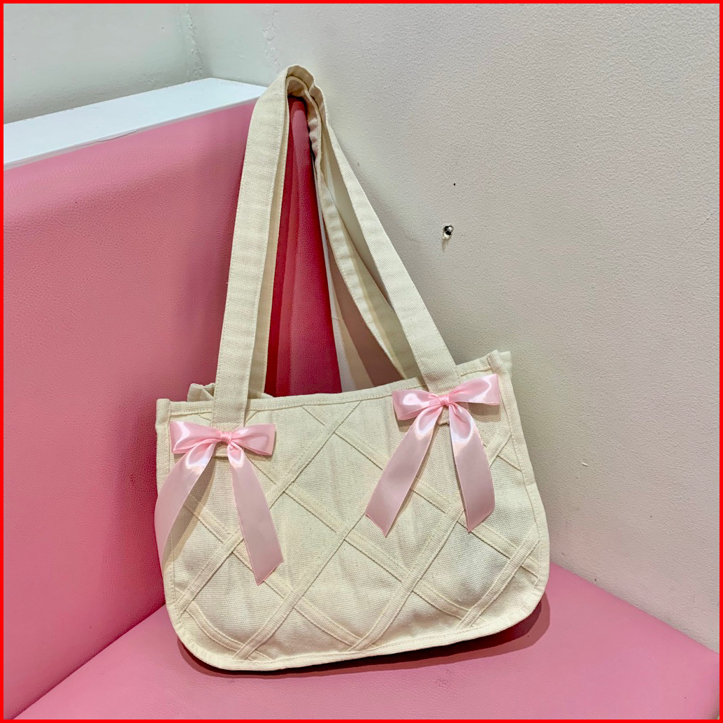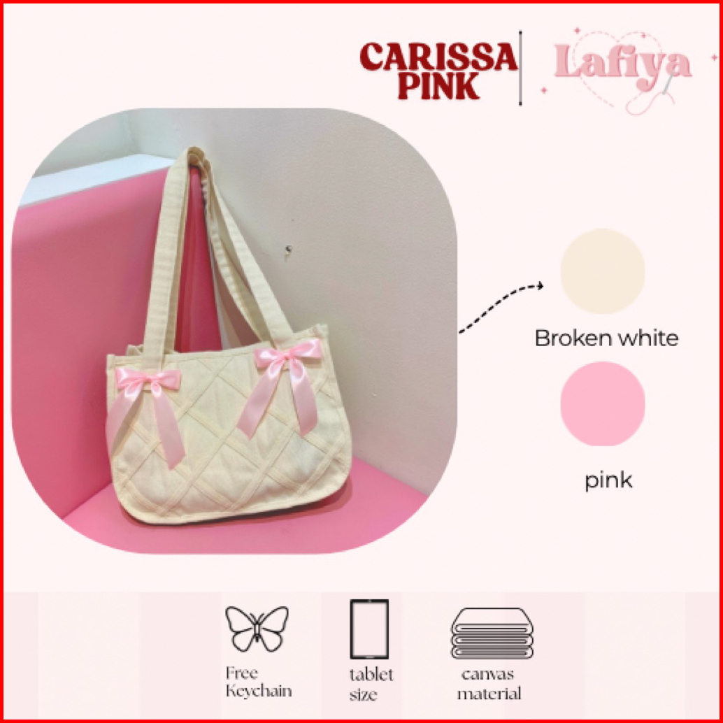 Carissa Pink Totebag Kanvas Tas Bahu Wanita Pita Coquette Tas Kuliah Kekinian