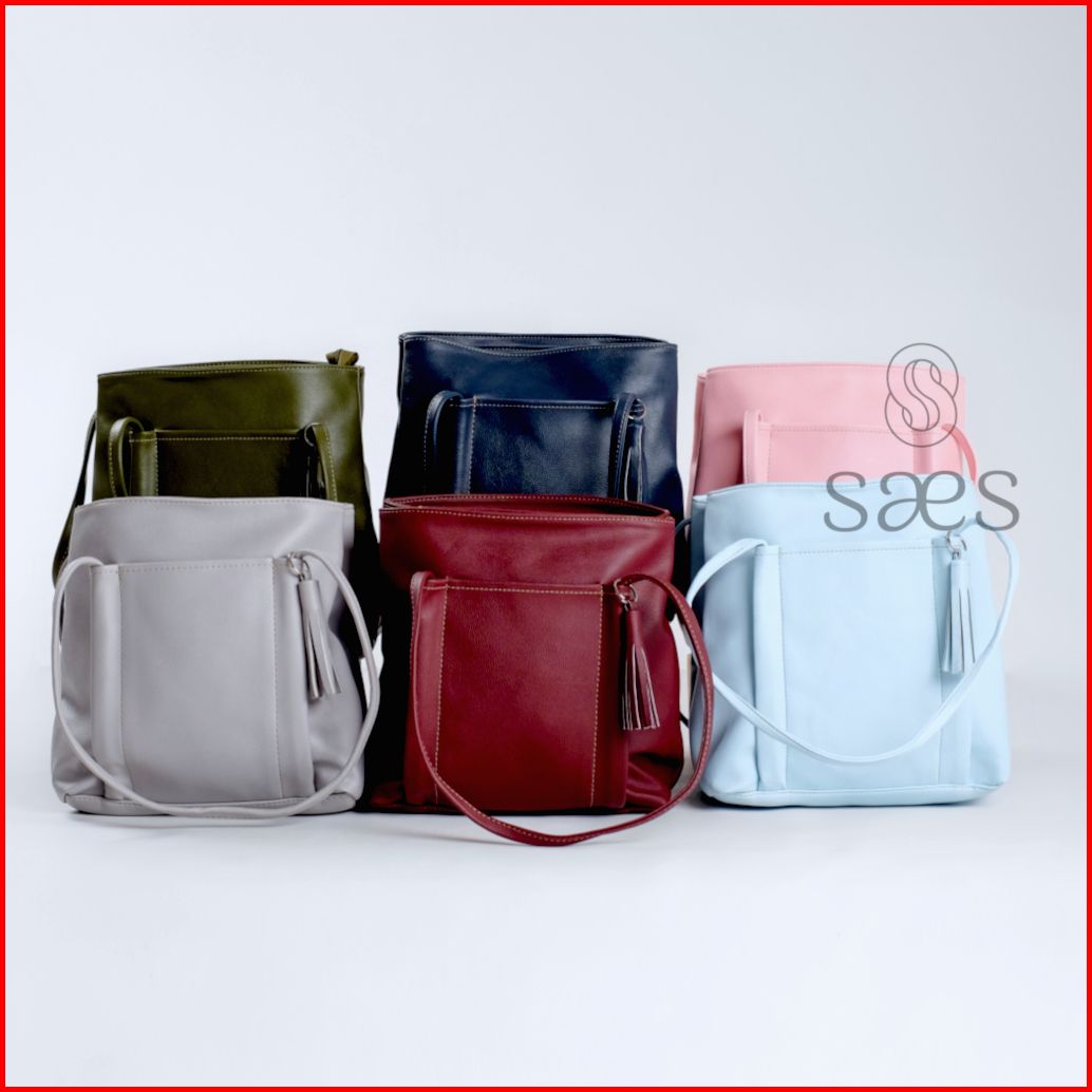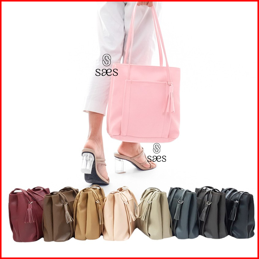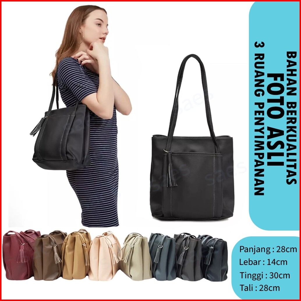 Saes Totebag Murah Wanita Cewek Selempang Lily Stylish Style Sb Polos Kulit Sintetis Premium Tas Kuliah