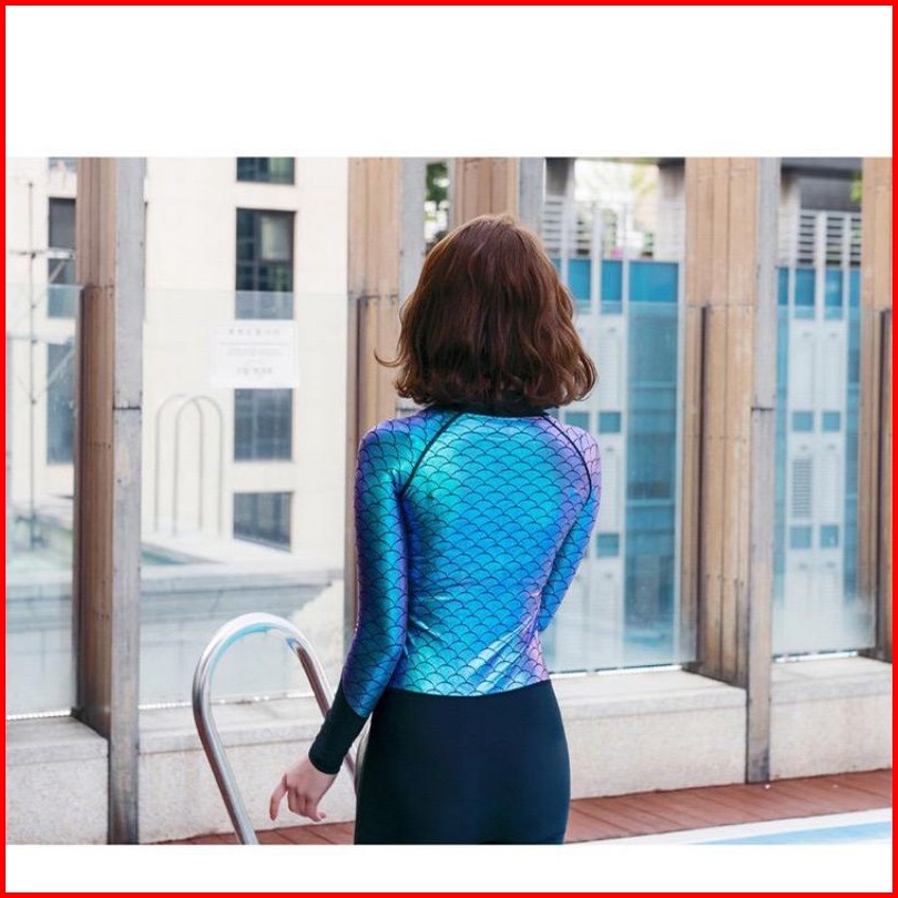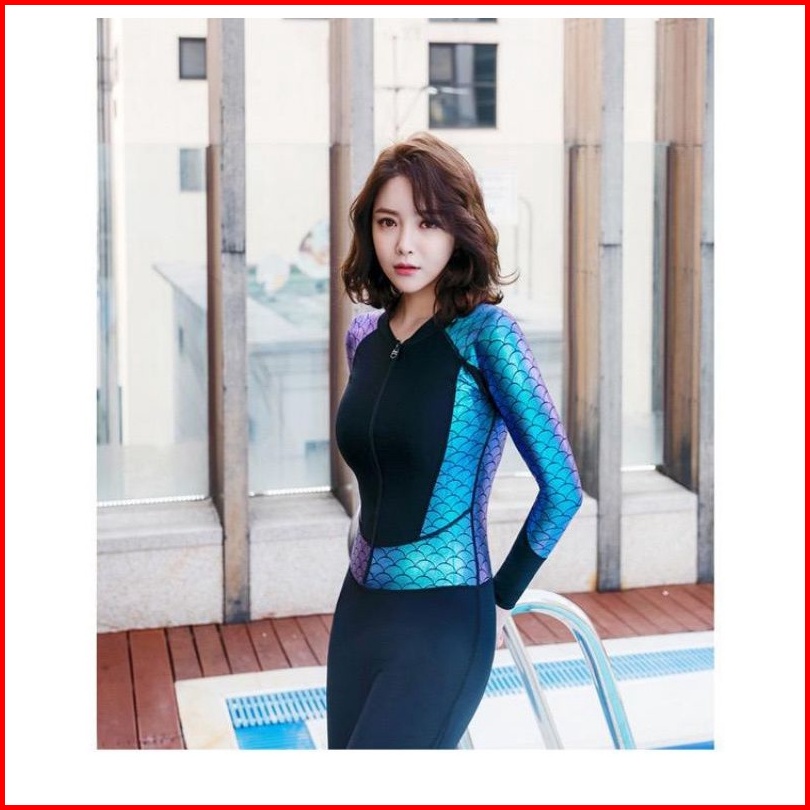 86911 Onepiece Lengan Panjang Wanita Bajurenang Mermaid Swimsuit Motif Mermaid