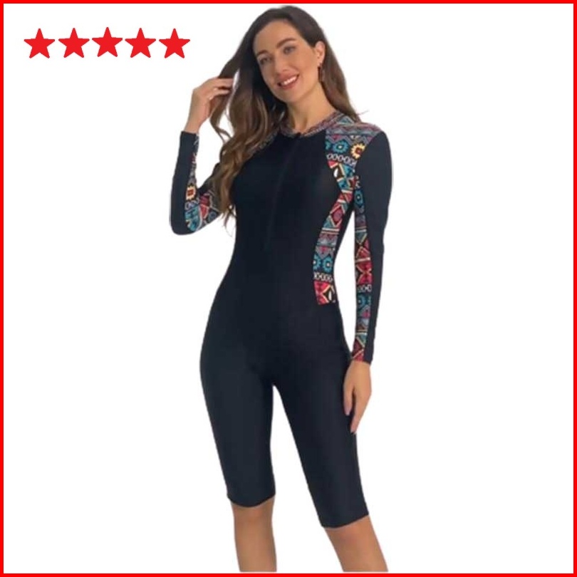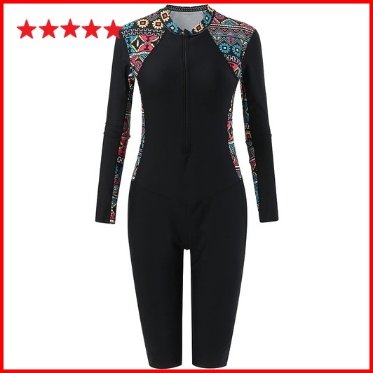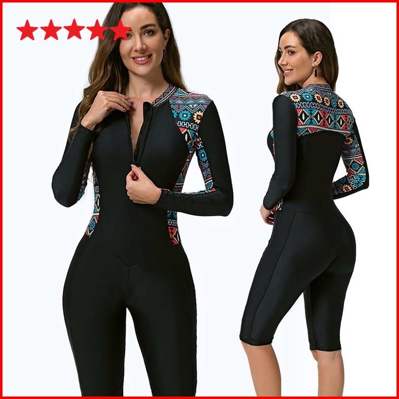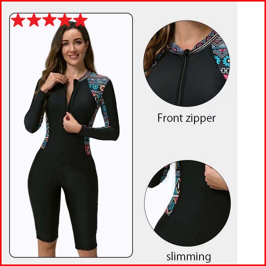 Baju Renang Wanita Lengan Panjang Dewasa Tangan One Piece Surfing Rashguards Ritsleting Depan Boxer Berselancar Snorkeli