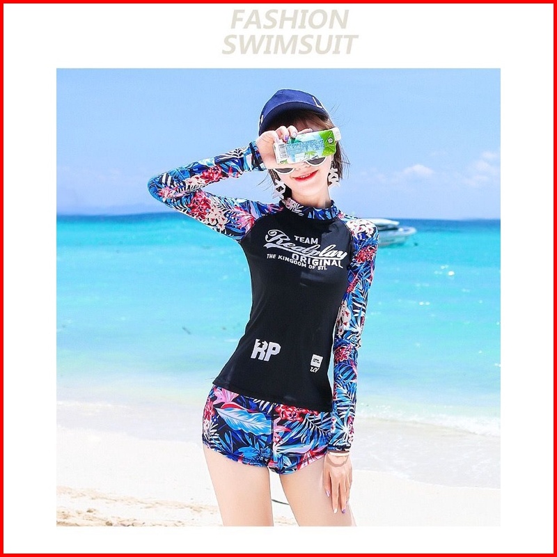 Baju Renang Wanita Lengan Panjang Rashguards Woman Swimming Surf Beach Suit Pakaian Pantai Uv Proof Baju Renang Dewasa B