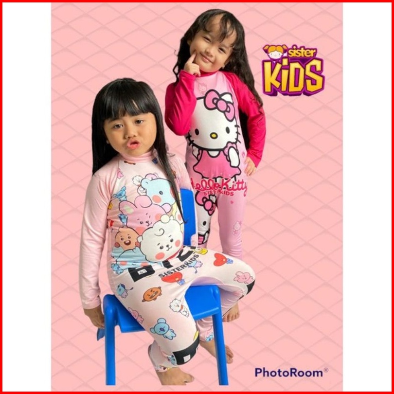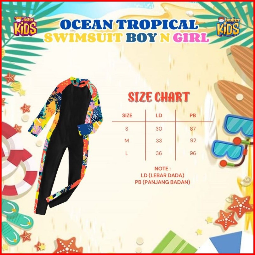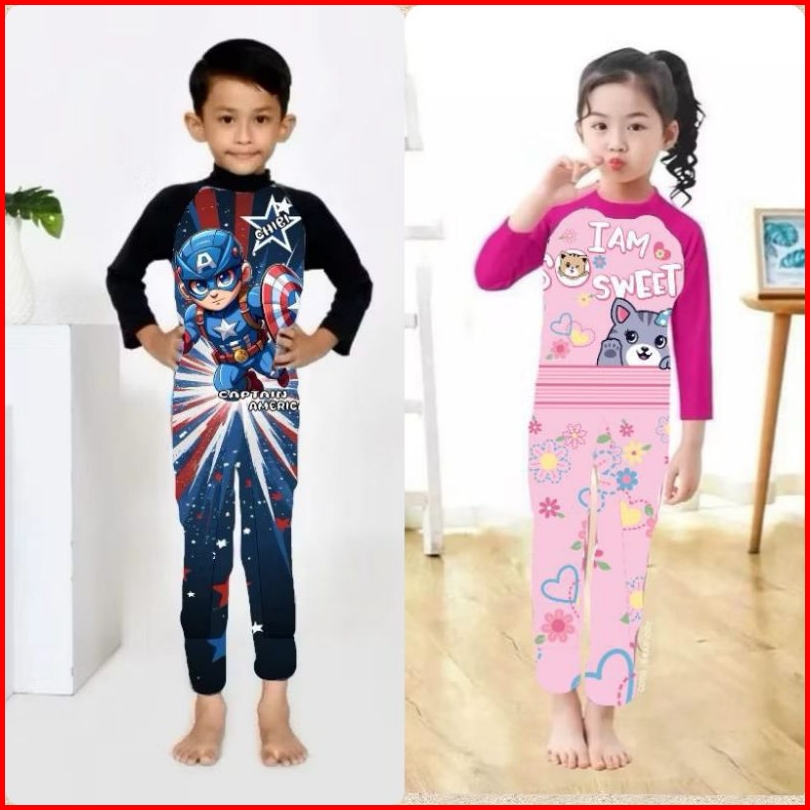 Ibos Kids - Baju Renang Anak Laki-laki Perempuan Muslimah 3-12 Tahun Lengan Dan Celana Panjang Motif