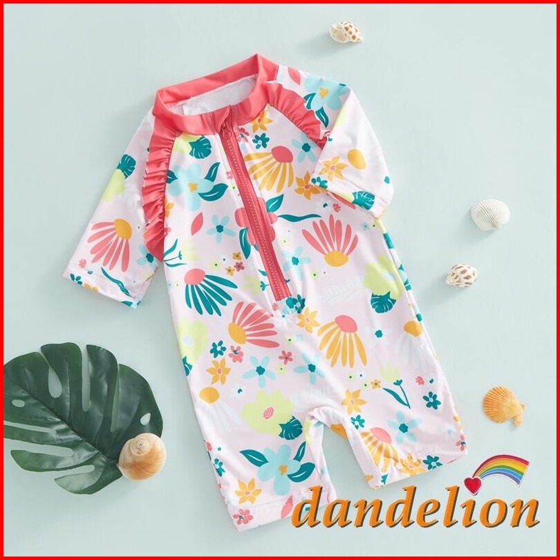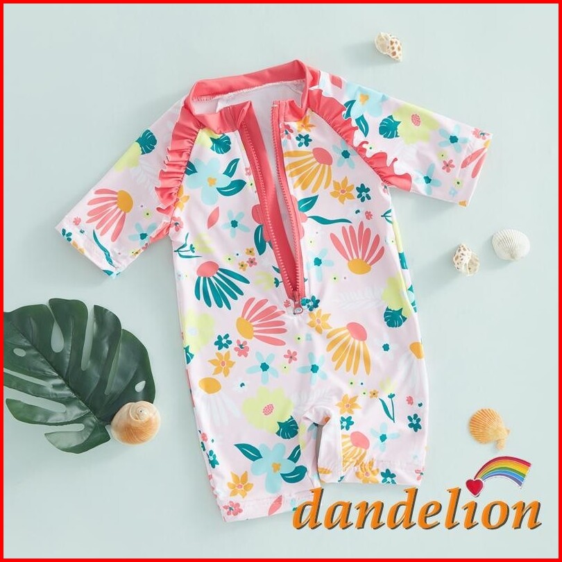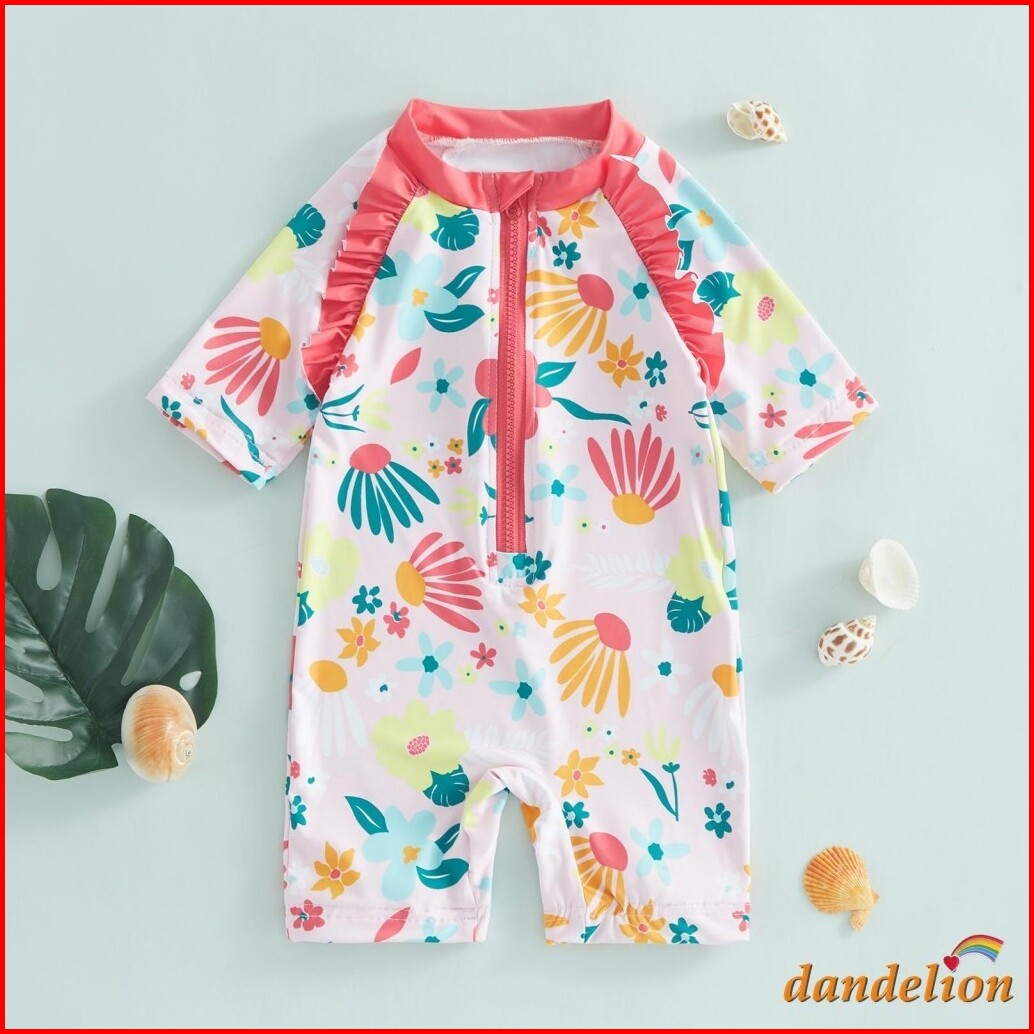 Baju Renang Pelindung Ruam Balita Perempuan Baju Renang Ruffle Motif Bunga Lengan Pendek