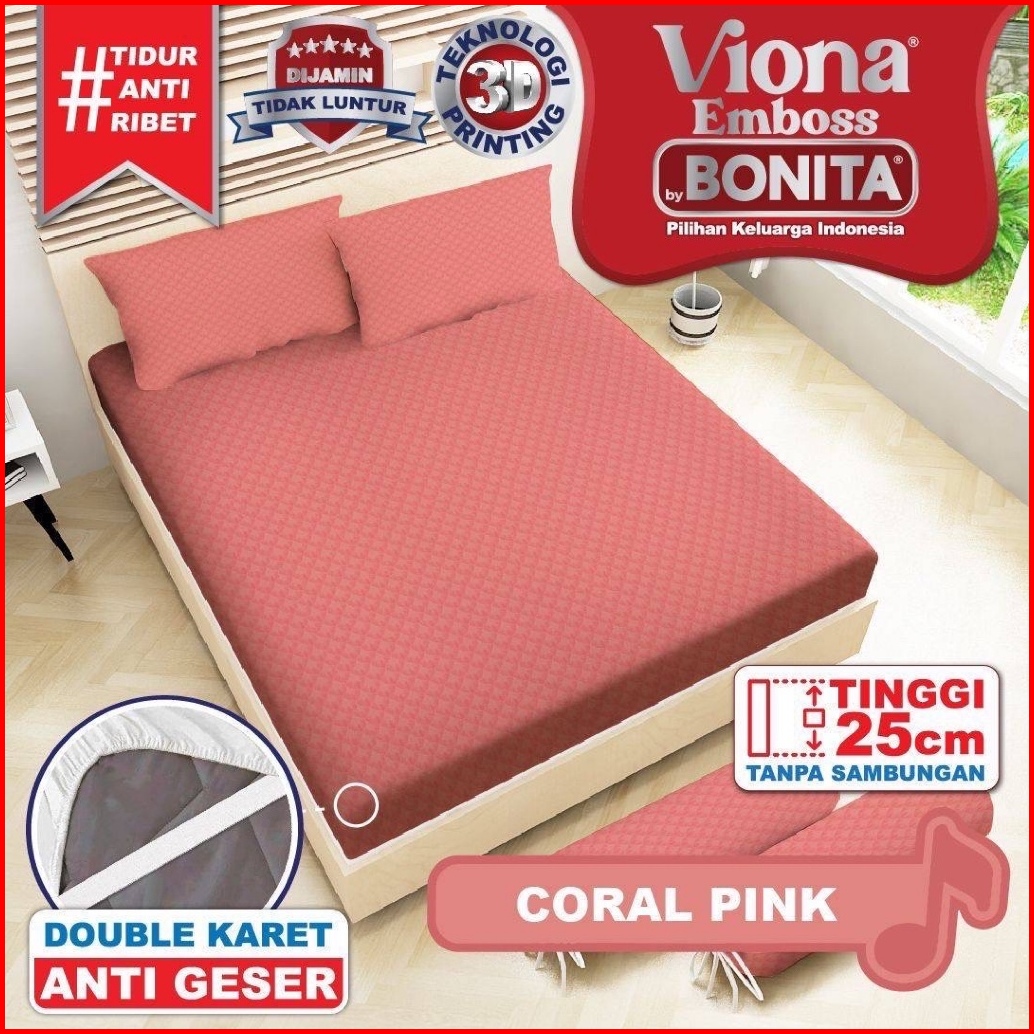 Sprei Bonita Viona Emboss - Double Karet Anti Geser Tidak Mudah Luntur - Uk 180x200 Cm