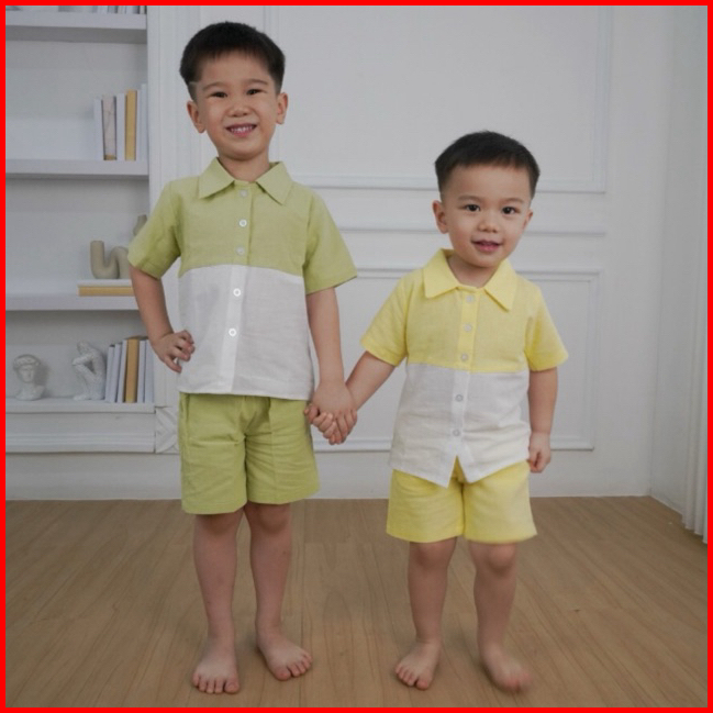 Benandlily - Nolan Set L Baju Anak Laki L Kids Wear L Setelan Baju Anak L Kaos Polo Fashion Kecil L Korean Style