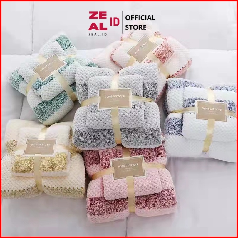 Zeal-id - Bnw025 Handuk Premium Tebal Motif Kotak 2in1 Cotton Towel - Grosir