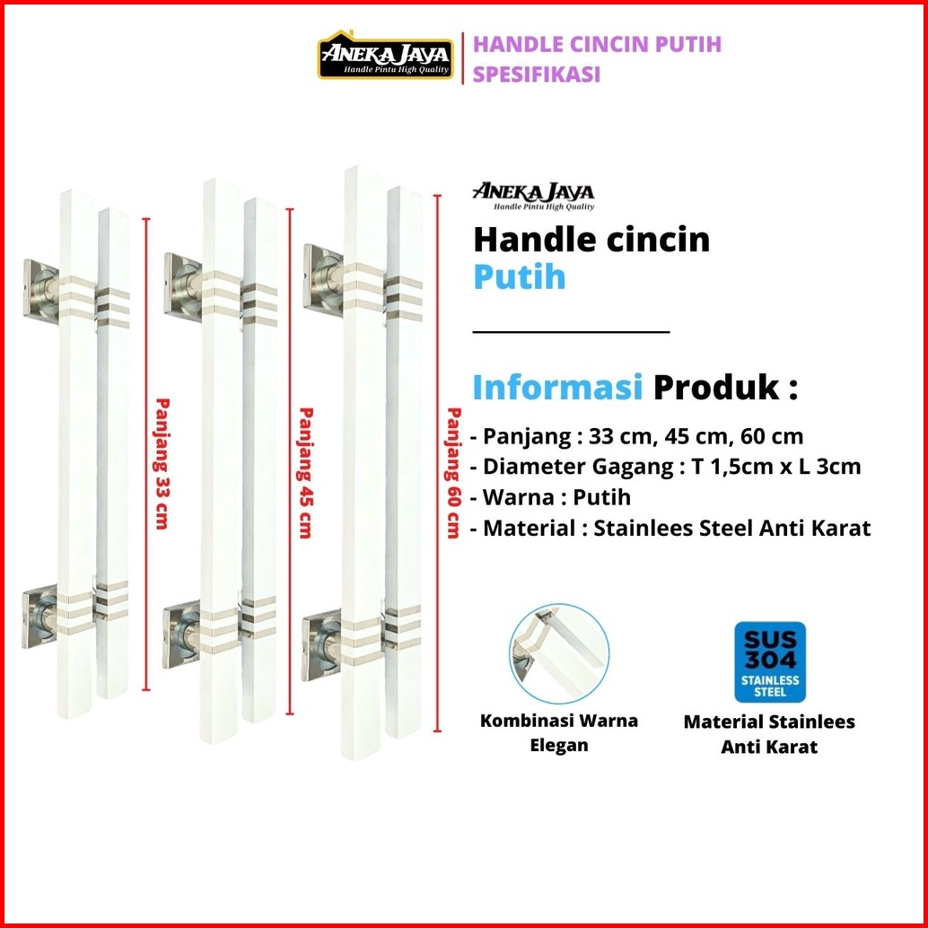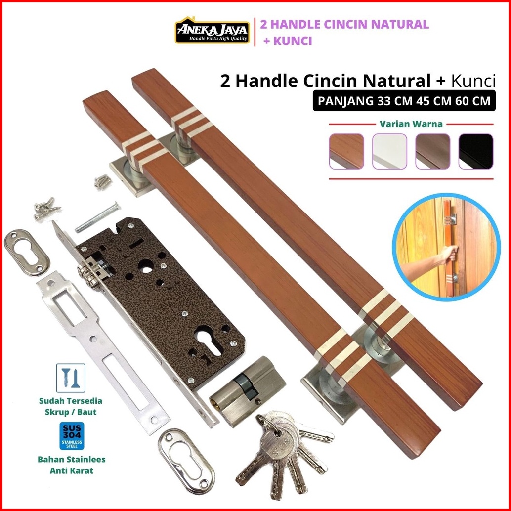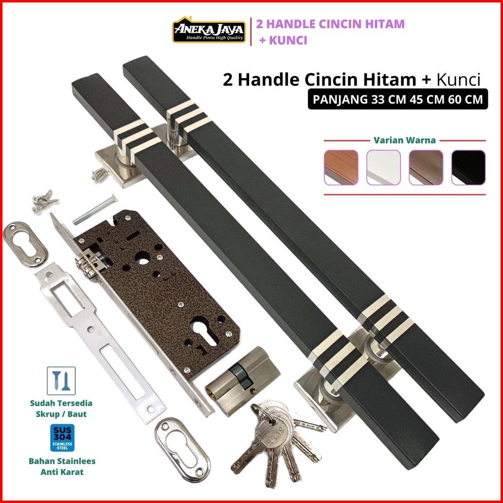 Paket 2 Gagang Pintu Rumah Set Kunci Panjang 33 Cm 45 60 Handle Pegangan Tarikan Kamar Depan Warna Putih Natural Hitam M