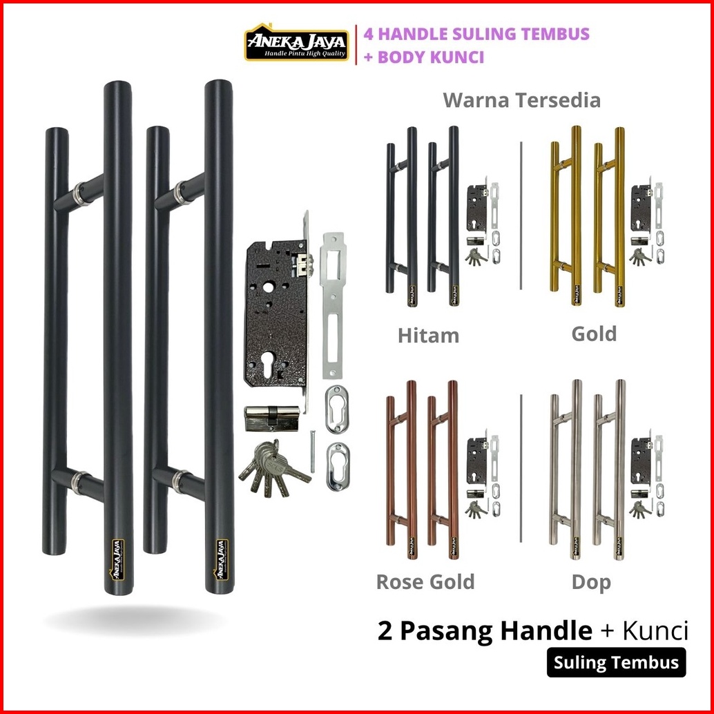 4 Handle Pintu Kaki Tembus Set Kunci - Panjang 60 Cm 45 33 - Gagang Tarikan Pegangan Bahan Stainlees Untuk Kayu Dan Kaca