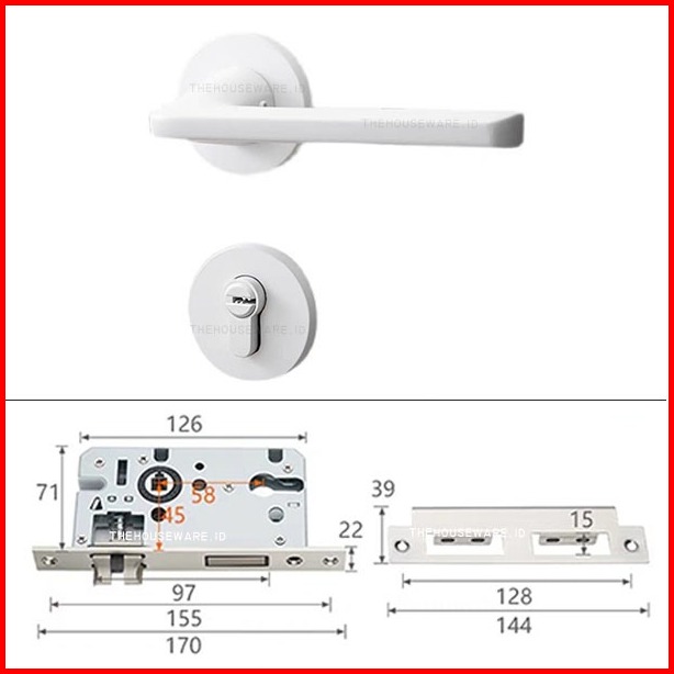 Pegangan Pintu 1 Set Model Kekinian Handle Lock Door Putih Premium Bedroom Living Room