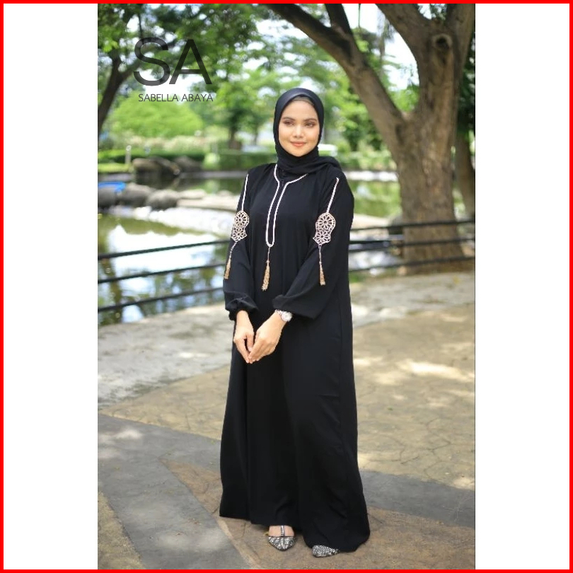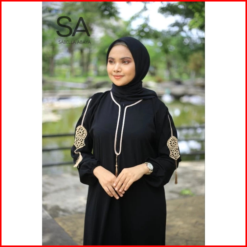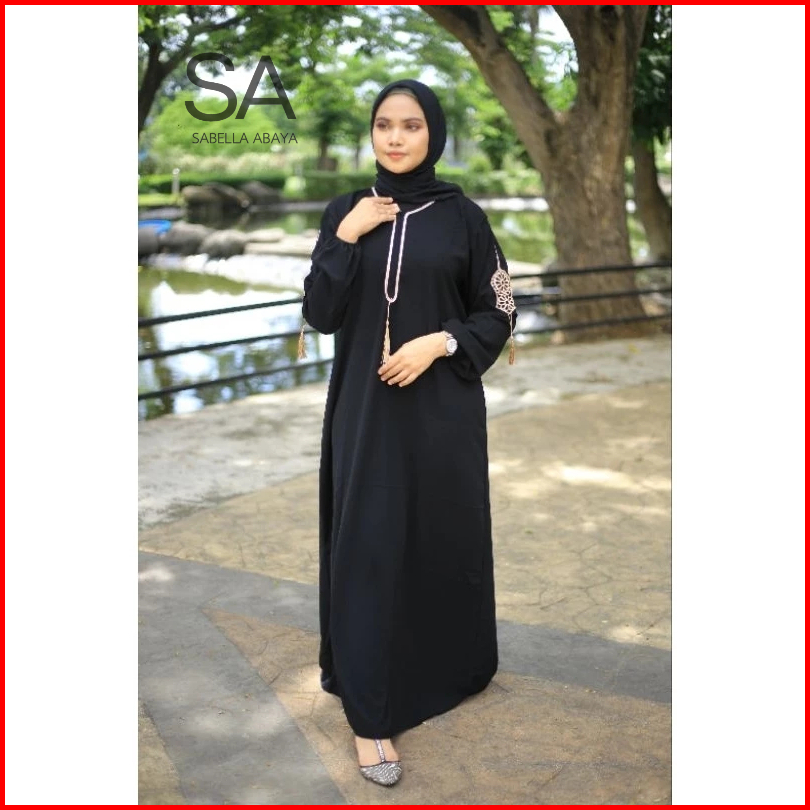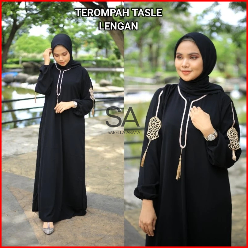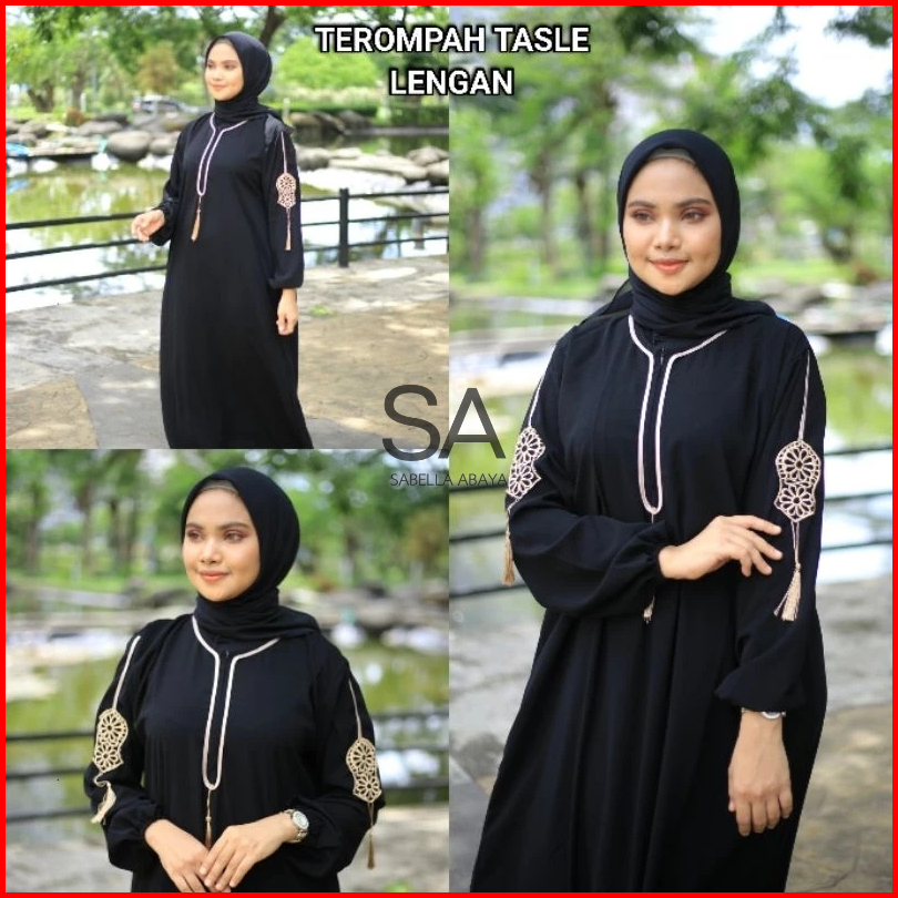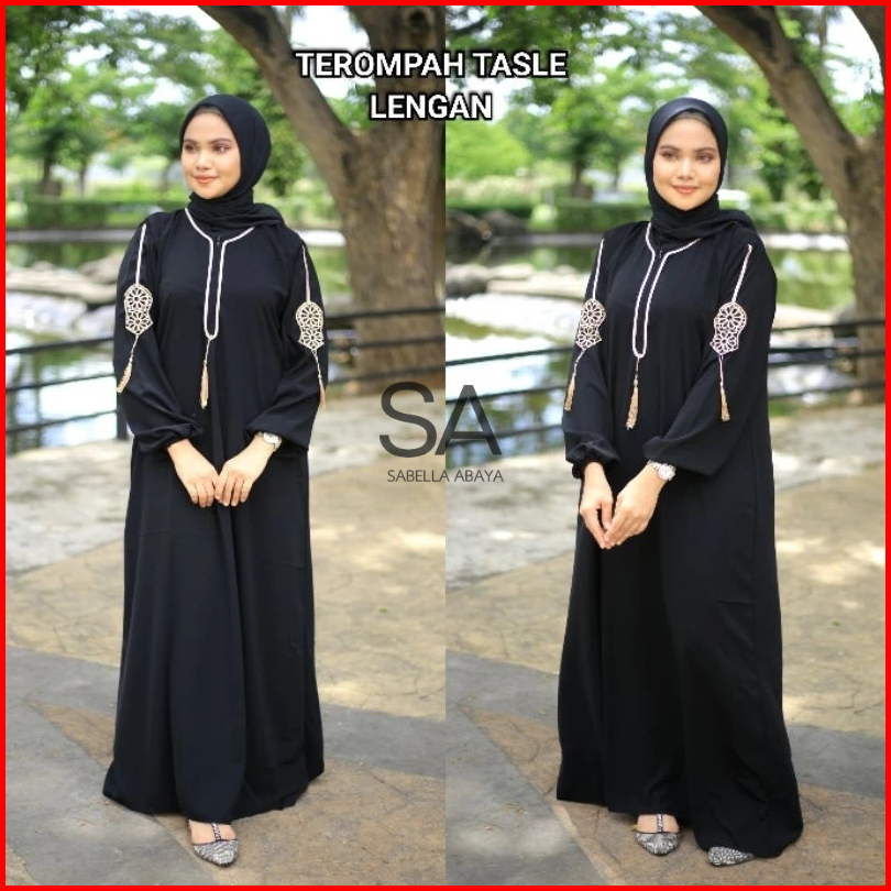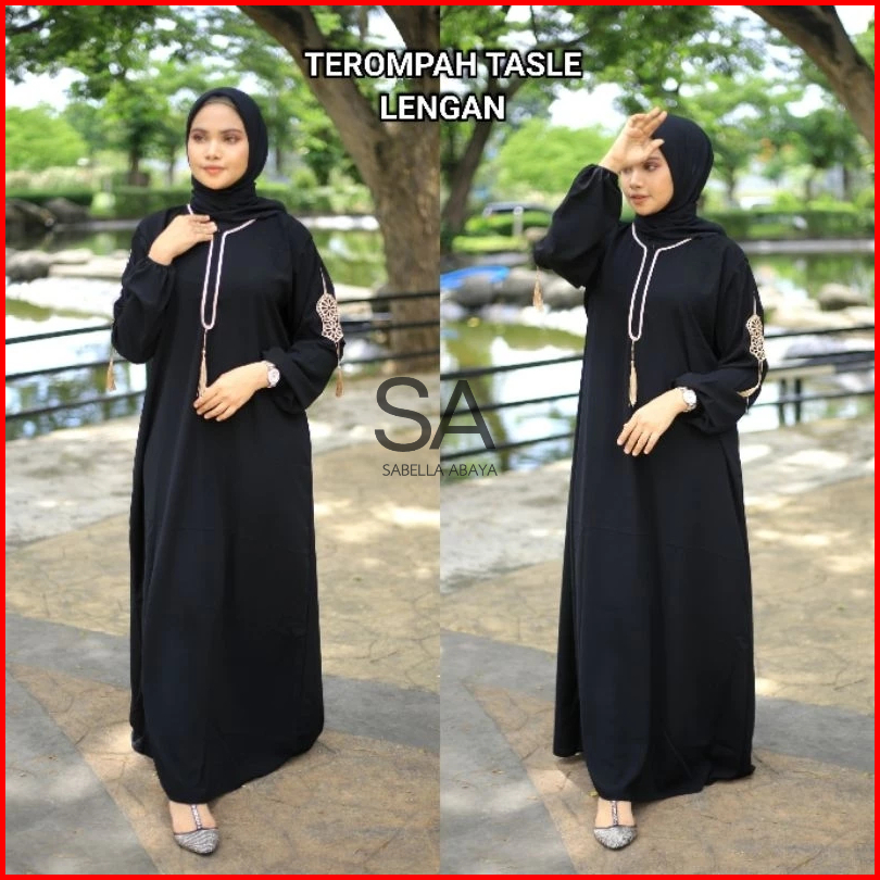Gamis Hitam Dubai Terompah Tasle Tangan Busui Jetblack Saudi By Sabella Abaya