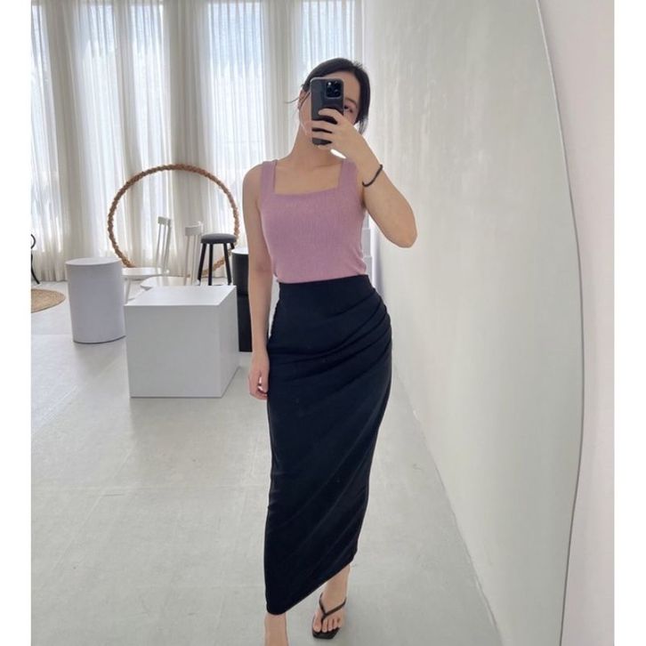 DEVKA FASHION Rok Span Wanita Rok Span Variasi Samping Long Skirt Rok Casual Rok Span Scuba
