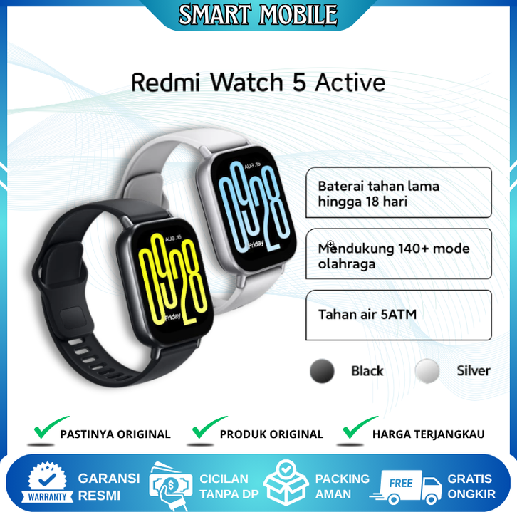 Smartwatch Xiaomi Redmi Watch 5 Active 2.0" LCD Display 140+ Mode Olahraga Tahan air 5ATM Terbaru Official Store