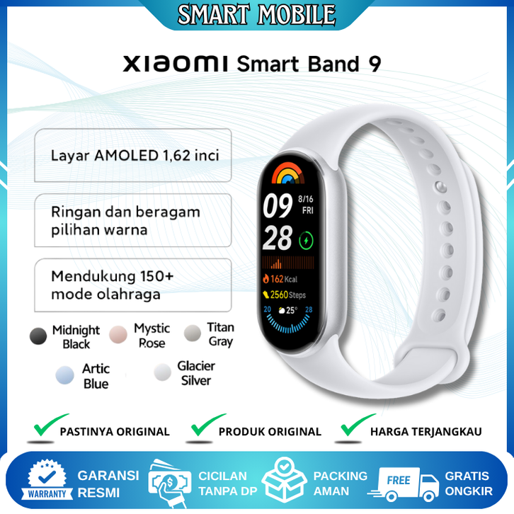 Smartwatch Xiaomi Smart Band 9 100+ Mode Olahraga Layar Amoled 1,62" Tahan Air 5 ATM Original Official Store
