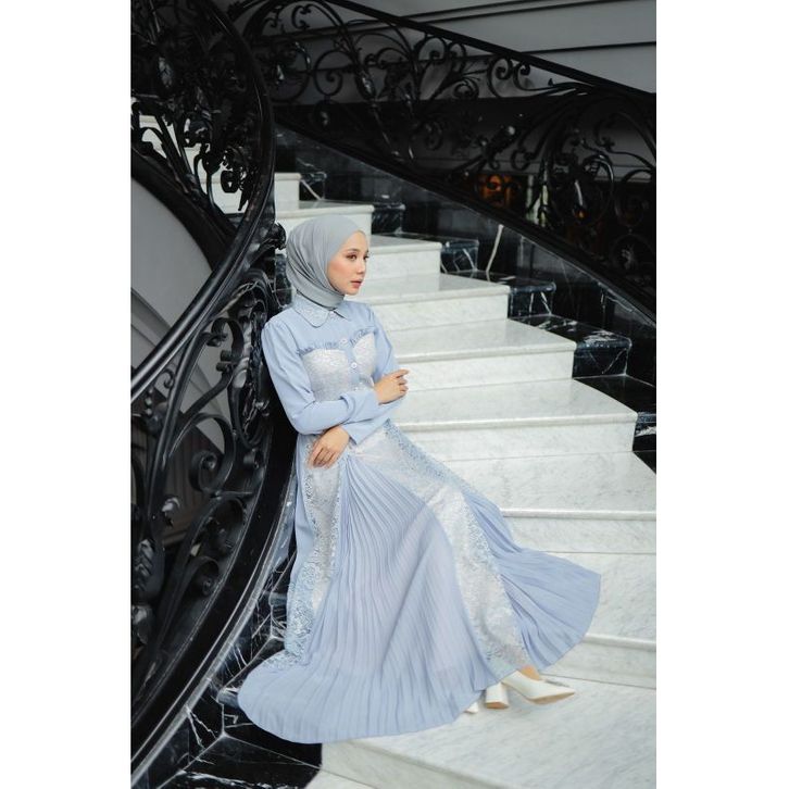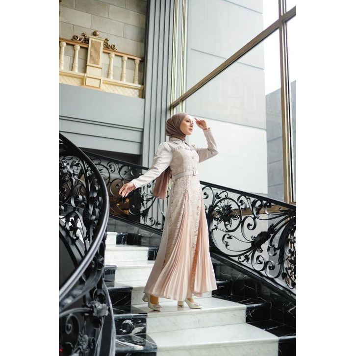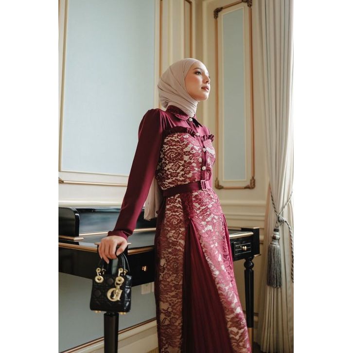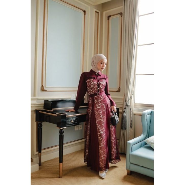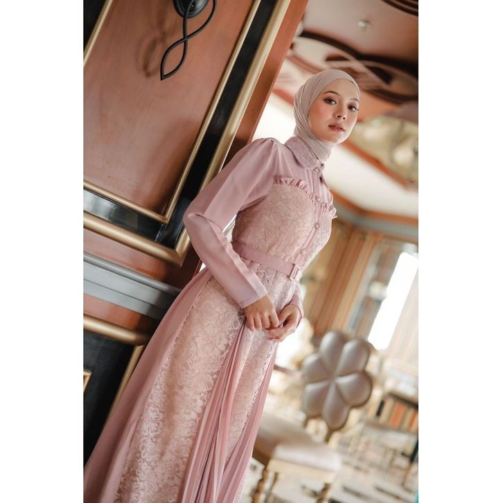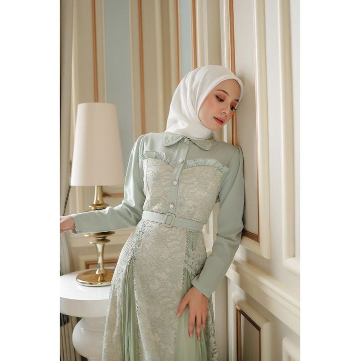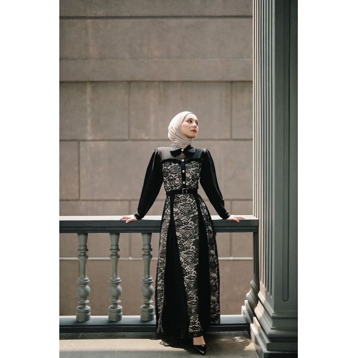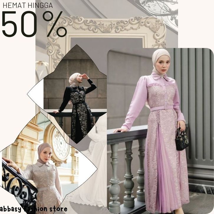 Gamis Wanita Greta Dress Wanita Gamis Cewek Dress Busui Friendly Perpaduan Bahan Brokat Dan Sifon