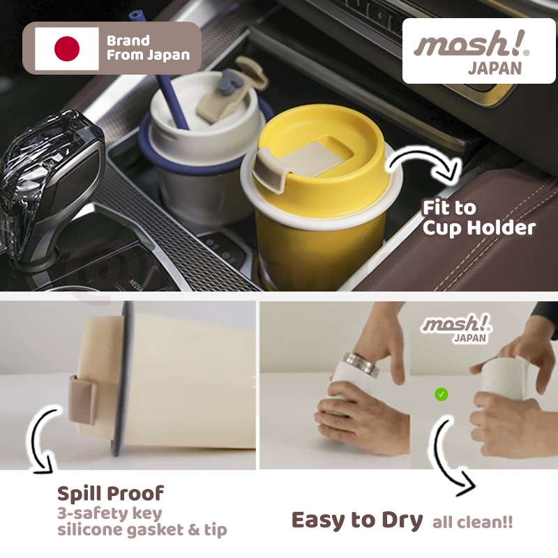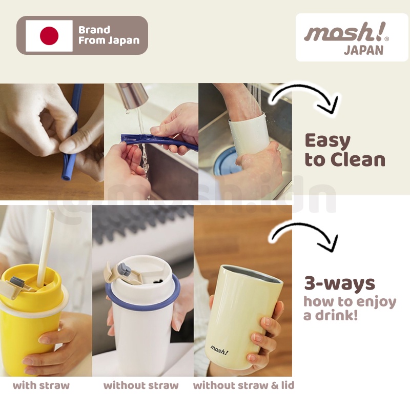 Tumbler Mosh Latte Straw Black Stainless Steel 480ml Botol Minum Termos Tahan Panas Dan Dingin Original
