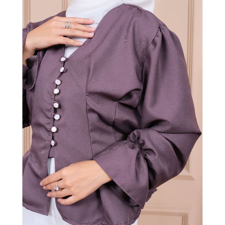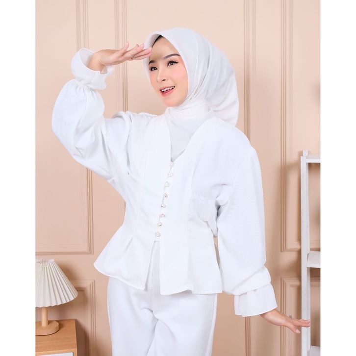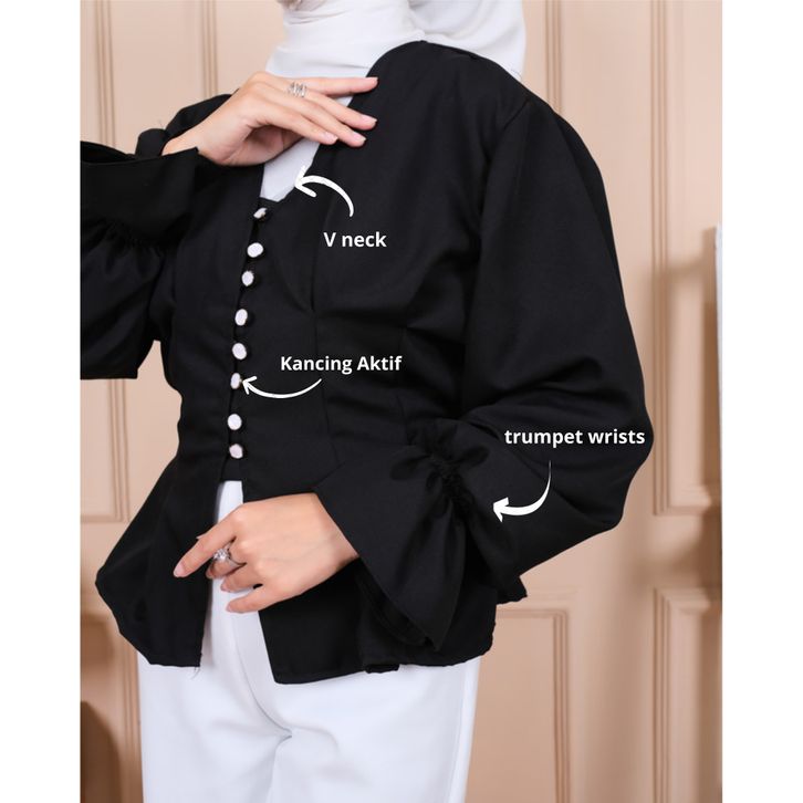 Blouse Wanita Kemeja Lengan Panjang Motif Polos V Neck Kasual Baju Atasan Hijab Friendly