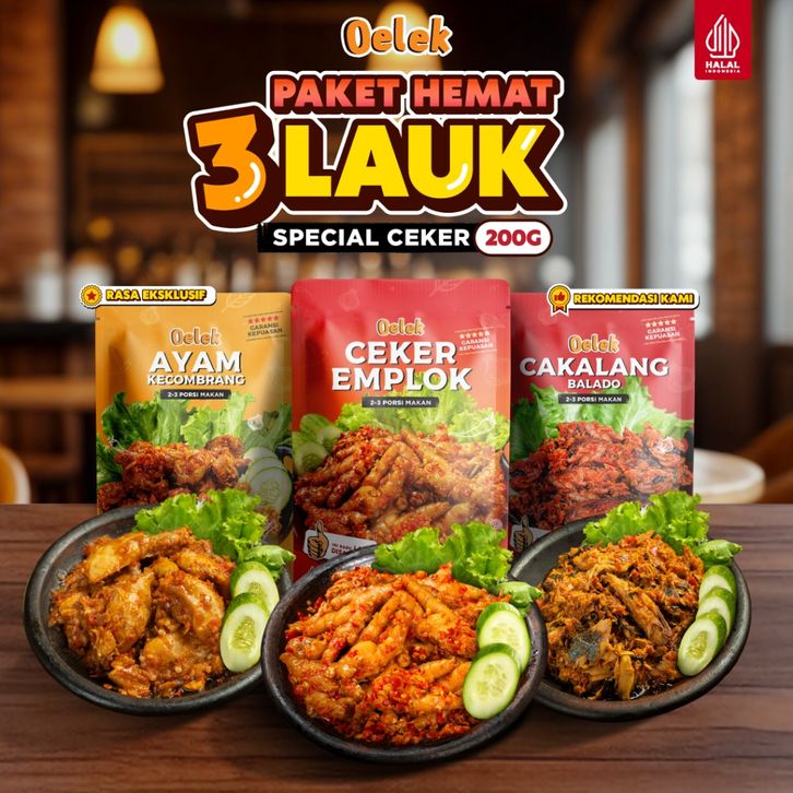 Oelek Paket 3 Bebas Pilih Ceker Mercon Emplok Tanpa Tulang / Iga Emplok / Cakalang Balado / Cumi Cabe Ijo / Ayam Kecombr
