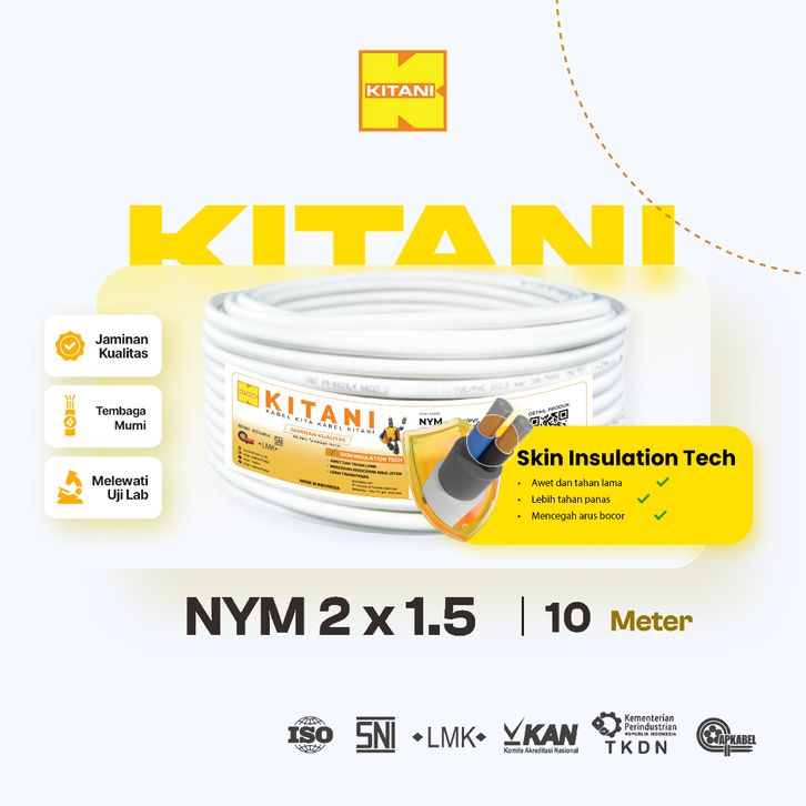 KITANI - NYM 2x1.5 mm² - 10 Meter - Kabel Listrik Tembaga Kawat
