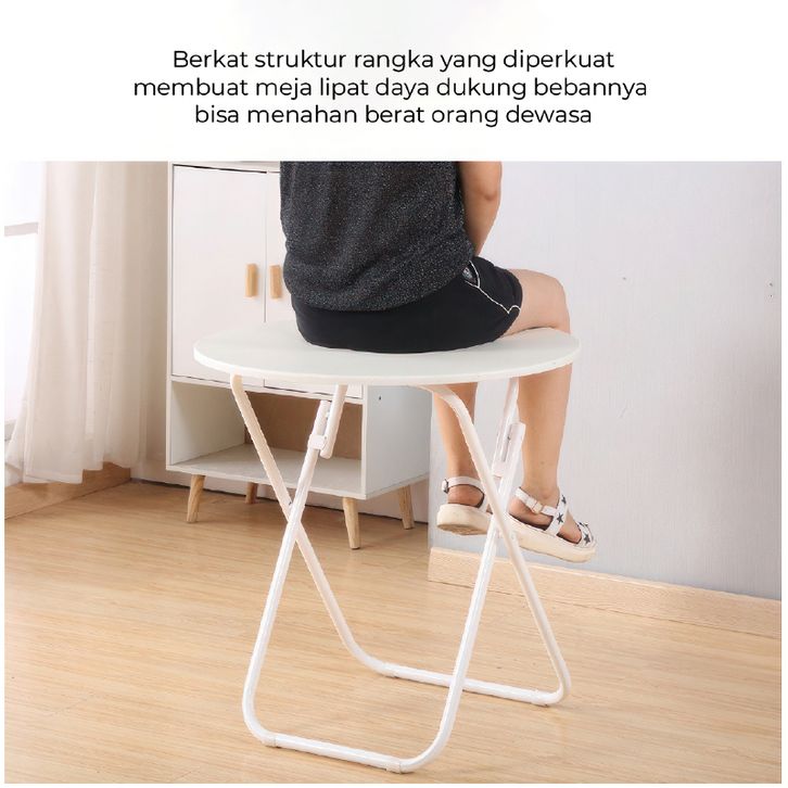 Meja Lipat Portable Bulat 60cm – Meja Cafe, Meja Makan Serbaguna Bahan Besi & Fiberboard Tebal