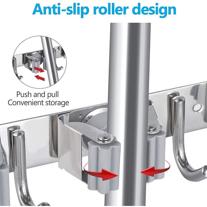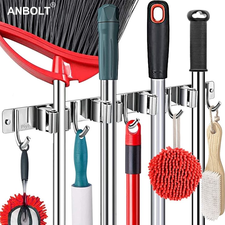 【Ready Stock】Anbolt Gantungan Sapu Dan Pel Dinding Stainless Steel SUS 304 Multifungsi Tempat Sapu Dan Pel / 5 Slot 6 Ka
