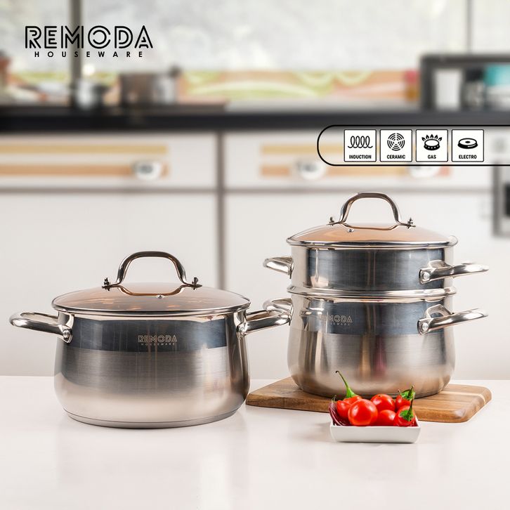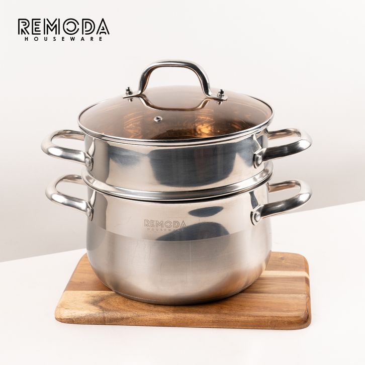 Remoda Soup Pot Panci Kuah Panci Steamer Panci Multifungsi Ukuran 22-26cm SUS304 Gagang Kuping Stainless Ready Stock