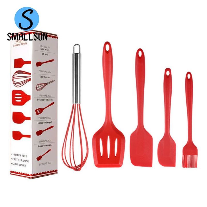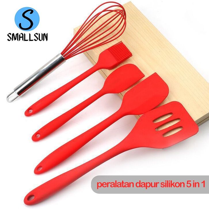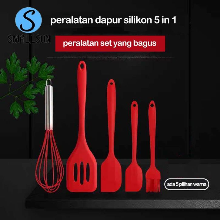 SPATULA SET ALAT MASAK 5 IN 1 SUTIL SCRAP KOCOKAN SILICONE / SPATULA SILIKON STAINLESS SET