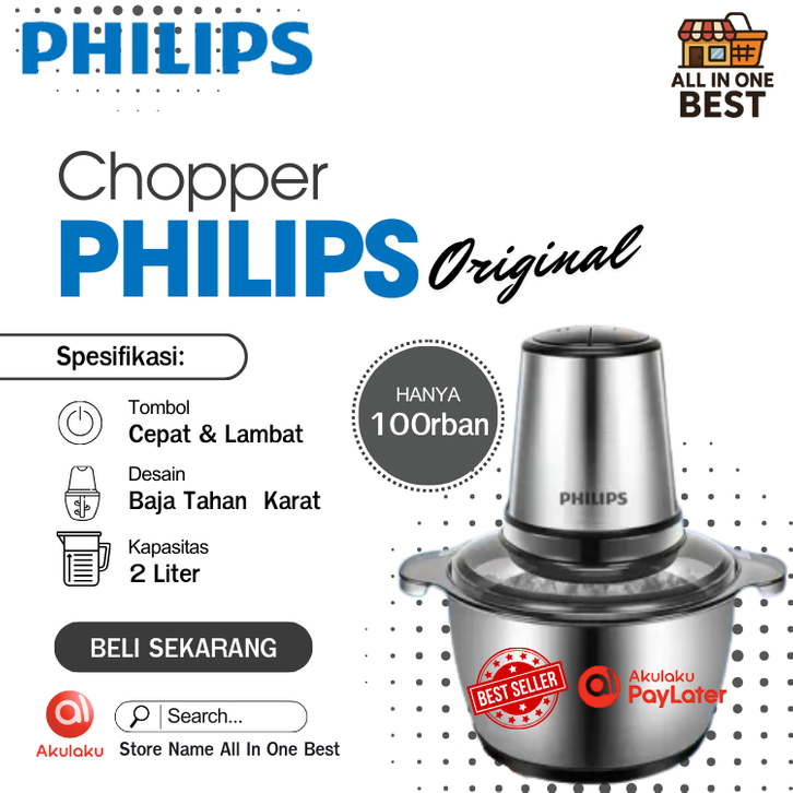Chopper PHILIPS 2L Blender Daging Bumbu Penggiling Elektrik SERBAGUNA Stainless Steel Chopper MULTIFUNGSI Ber SNI