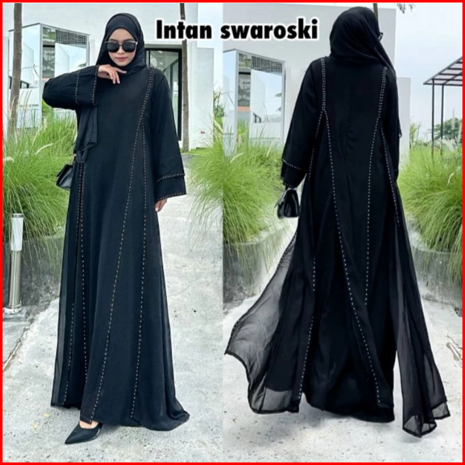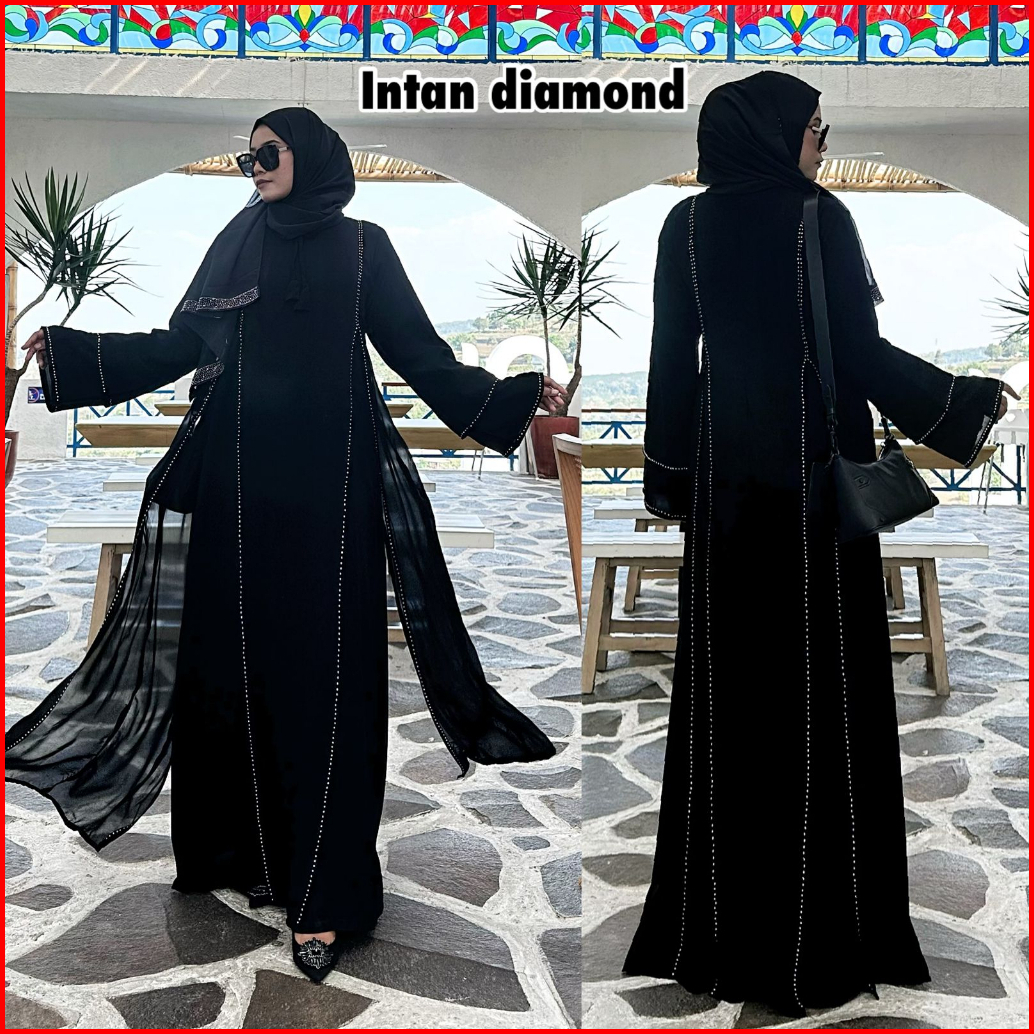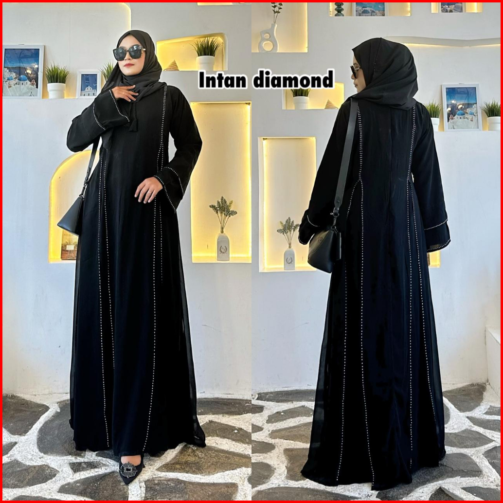 Abaya Hitam Turkey Gamis Dress Maxi Arab Saudi Bordir Turki Dubai Intan
