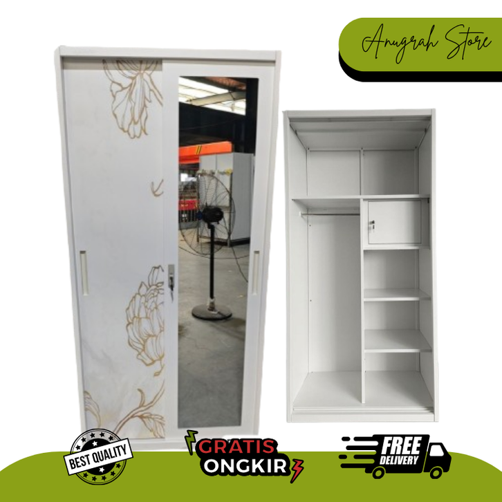 lemari pakaian besi dengan kaca sliding dua pintu termurah bergaransi