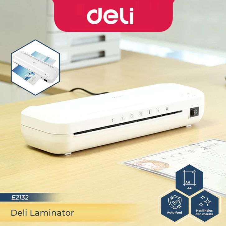 Deli Laminator Mesin Laminating A4 80-125 Mic Laminasi Hot & Cold Foto Dokumen E14378
