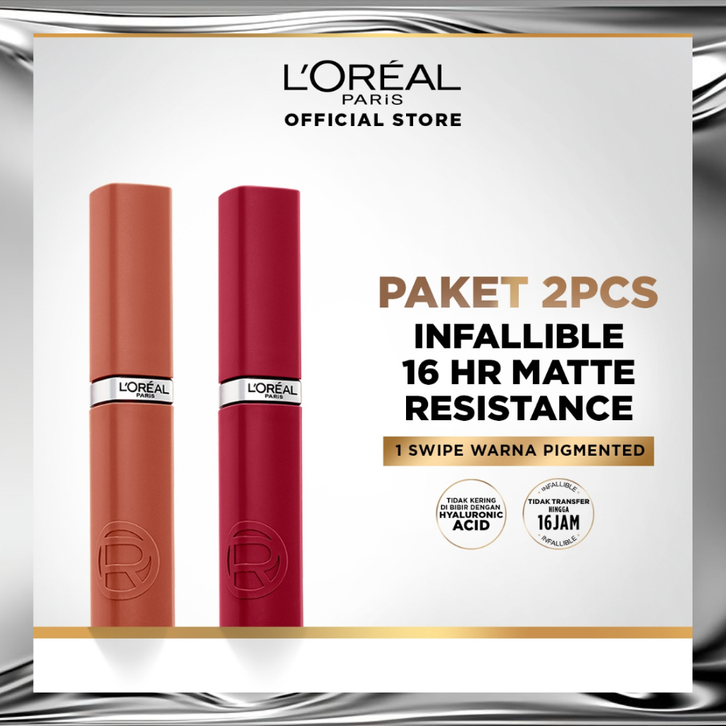 [Mall]PAKET HEMAT 2PCS L’Oréal Paris Twinpack Infalible Matte Resistance Liquid Lipstick for 16H Long Lasting Matte lips