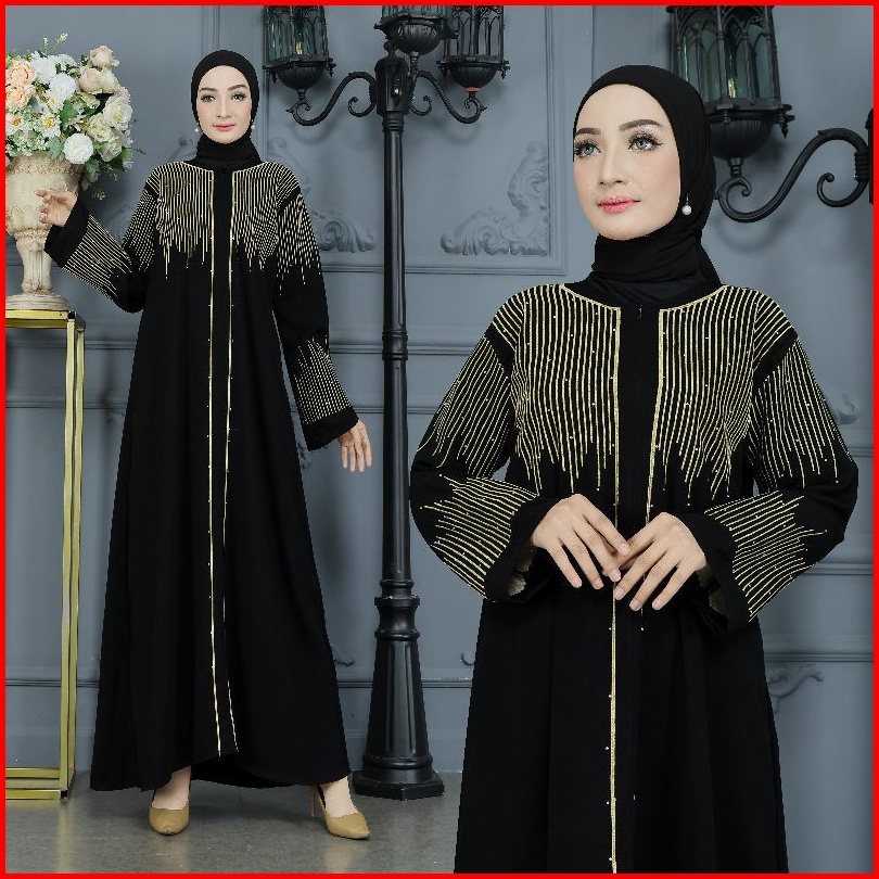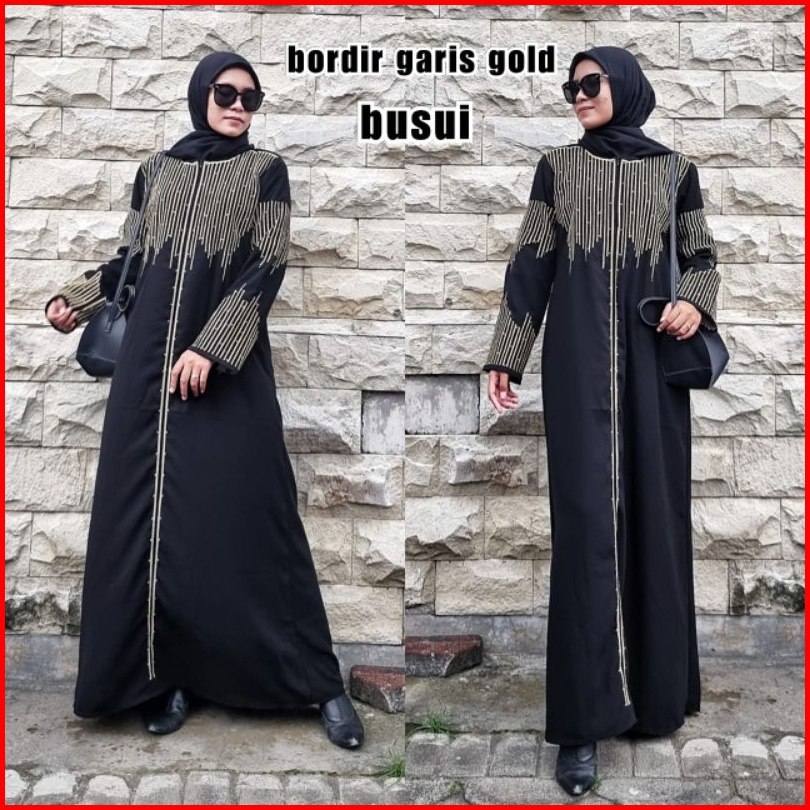 Abaya Hitam Turkey Bordir Gamis Maxi Dress Arab Saudi Zephy Turki Dubai Bordir Garis