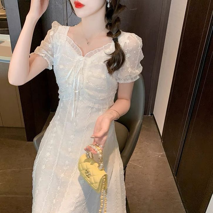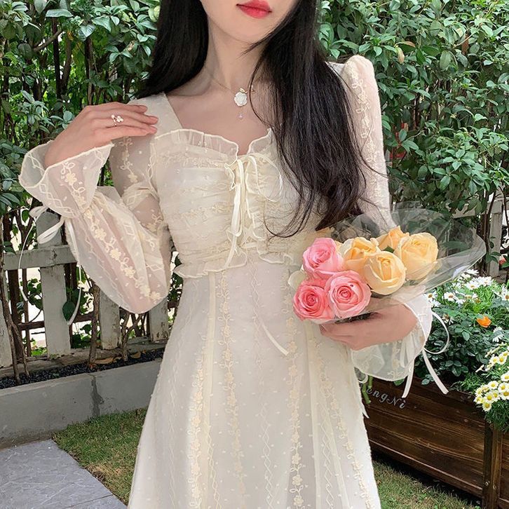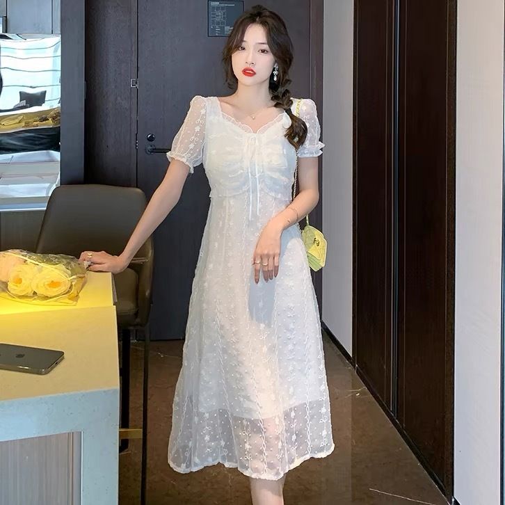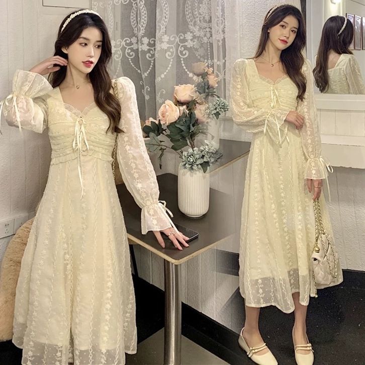 Dress Wanita Korea Variasi Brukat Bunga 2Versi Model M367