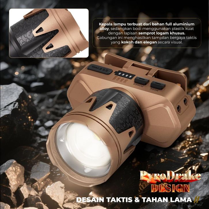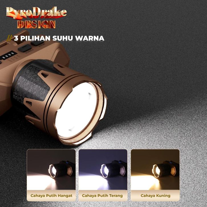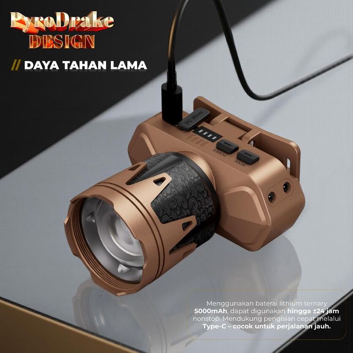 AOKI Senter Kepala PyroDrake | Bisa Menyulut Api | Sensor Gerak | 3 Warna Cahaya | USB Recharge