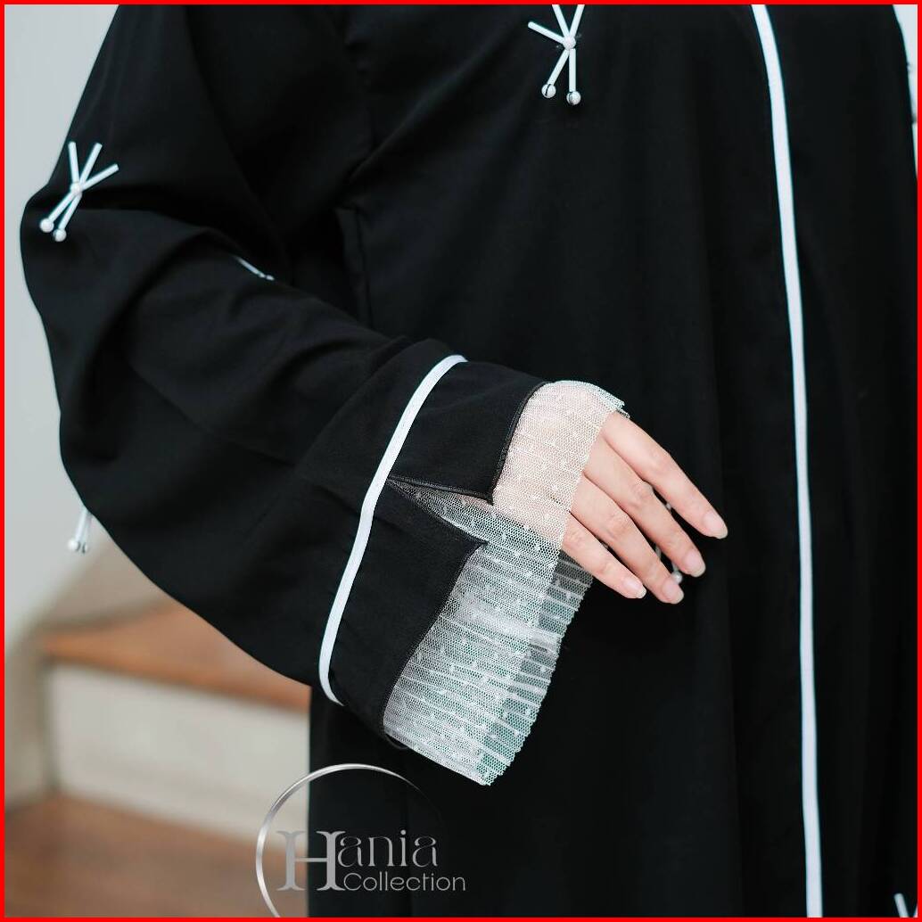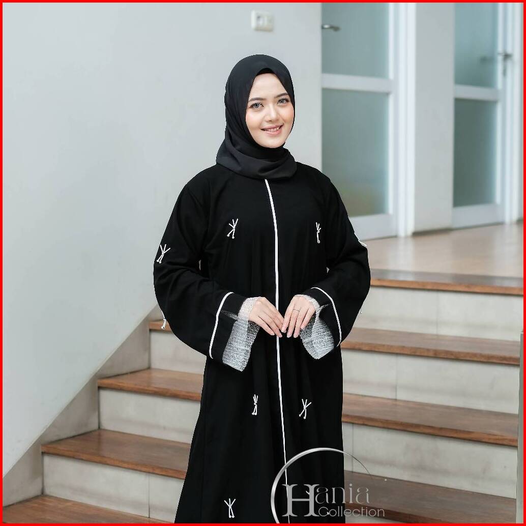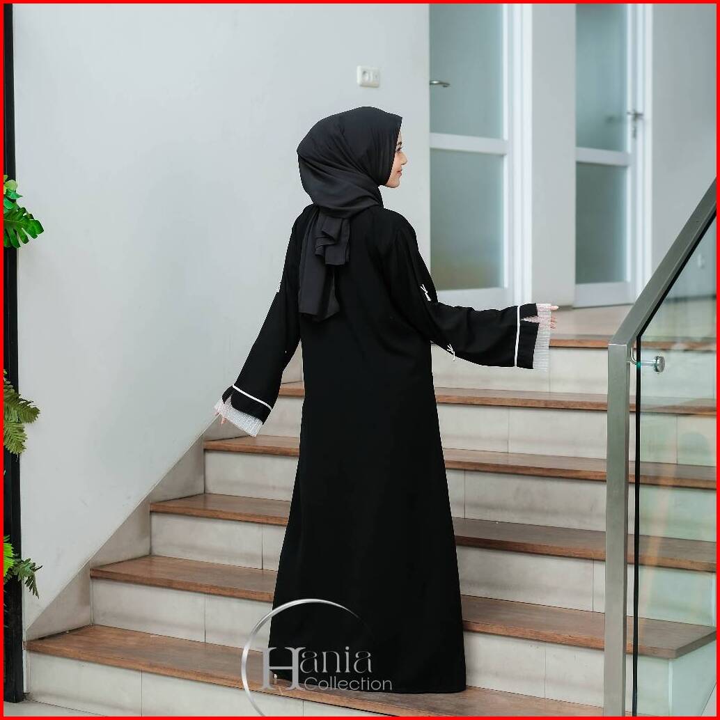 Abaya Hitam Turkey Gamis Syari Muslimah Jetblack Payet Simple Dress Busui Kombinasi Putih 991