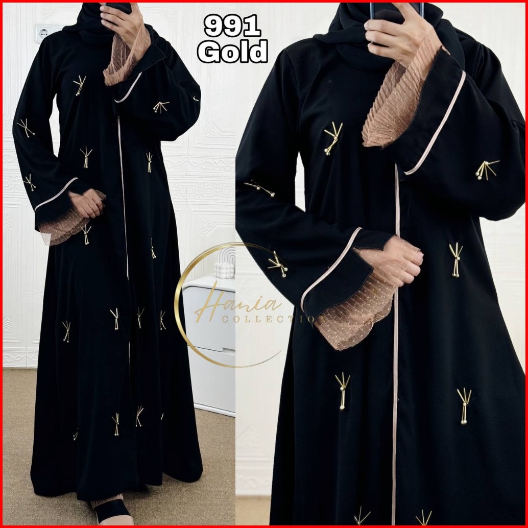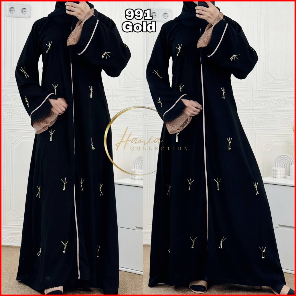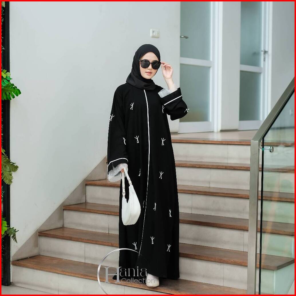 Abaya Hitam Turkey Gamis Syari Muslimah Jetblack Payet Simple Dress Busui Kombinasi Putih 991