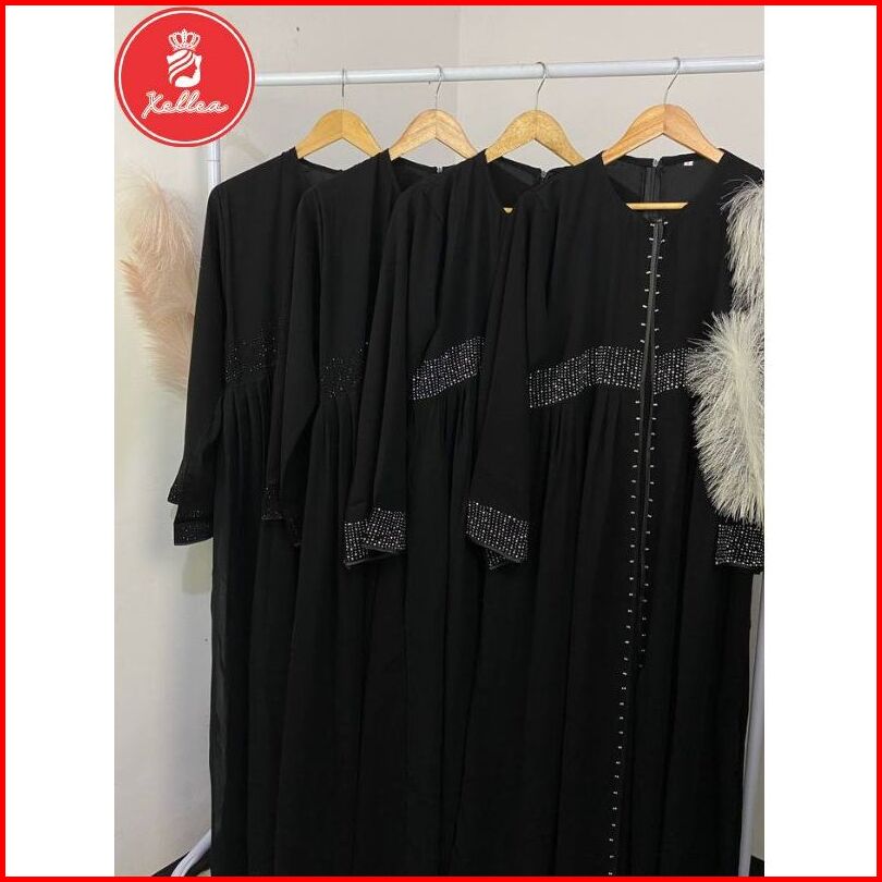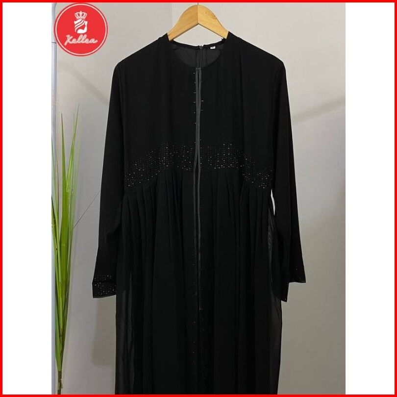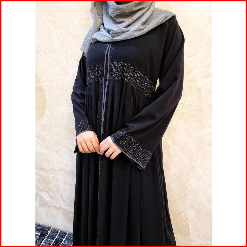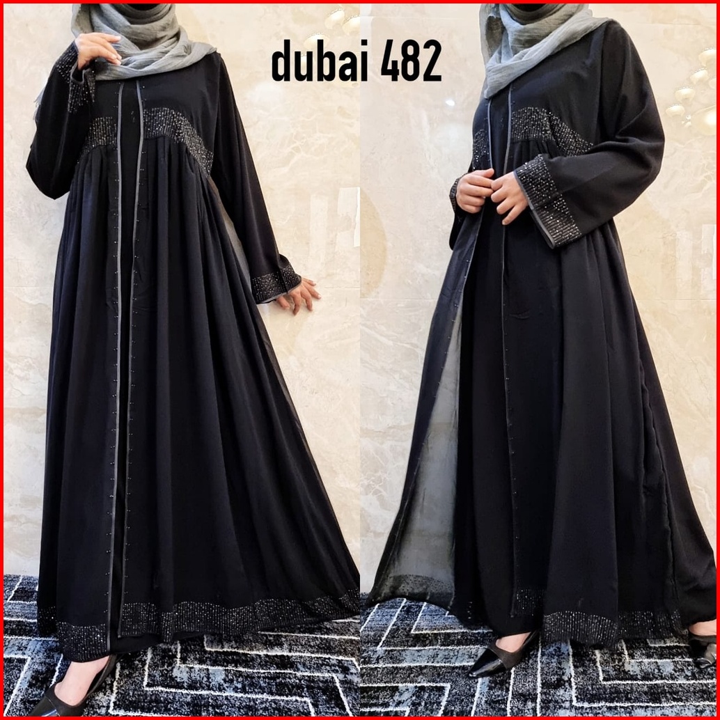 Abaya Hitam Mewah Jumbo Gamis Abaya Arab Lebaran Kondangan Dubai 482 Fashion Muslim Wanita - Xellea