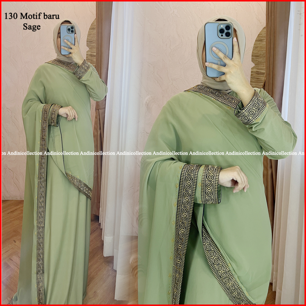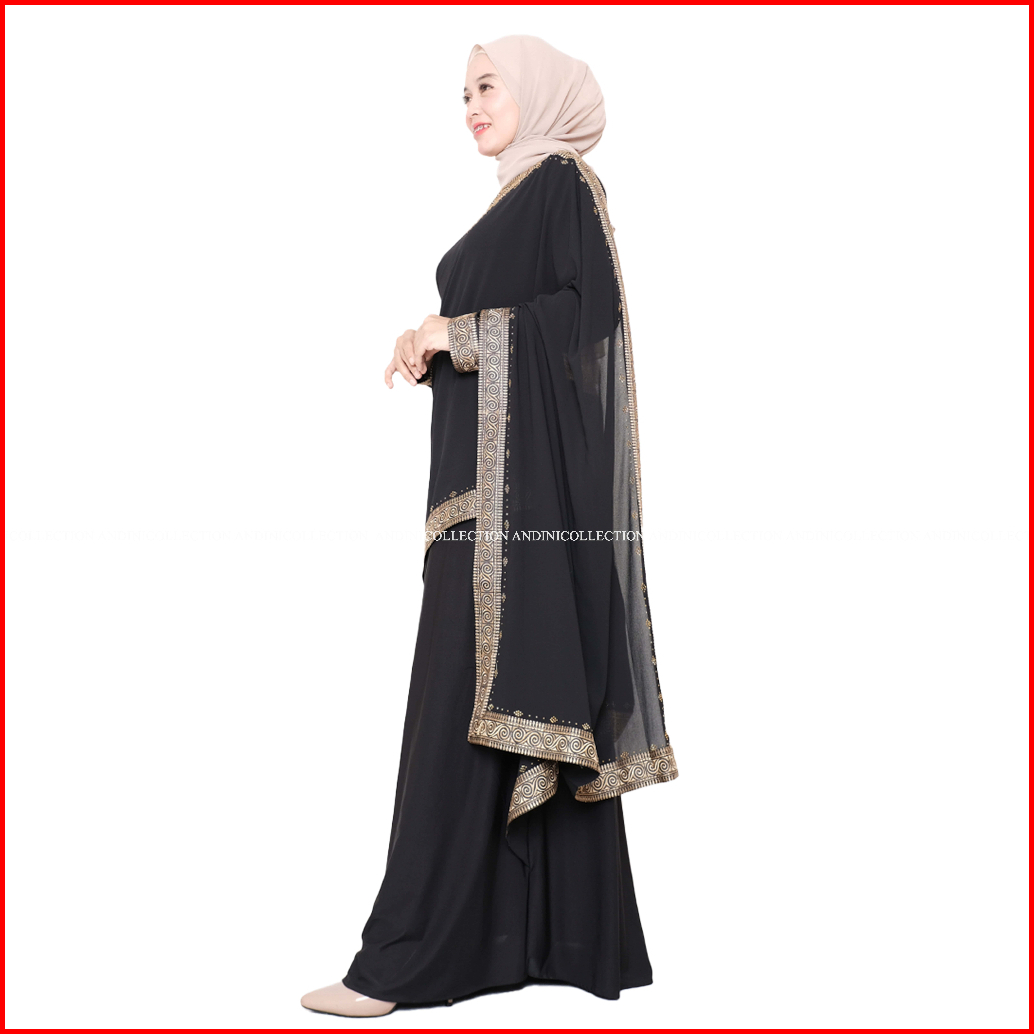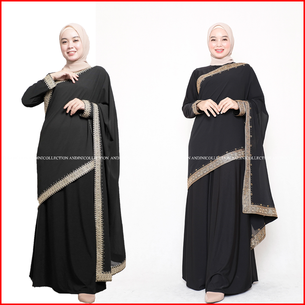 Andinicollection Abaya Turkey 130 Amarta Selendang India Hitam Putih Dewasa Muslim Bordir Dan Payet Mewah Vol 1
