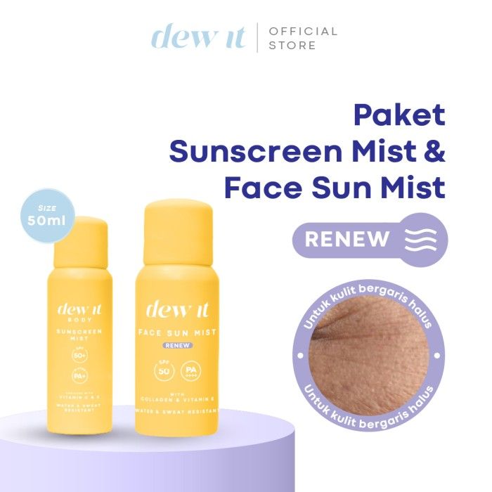 Dew It - 2pcs Bundle Face Sun Mist Renew 60ml + Sunscreen Mist Body 50ml | Sunscreen Wajah dan Badan