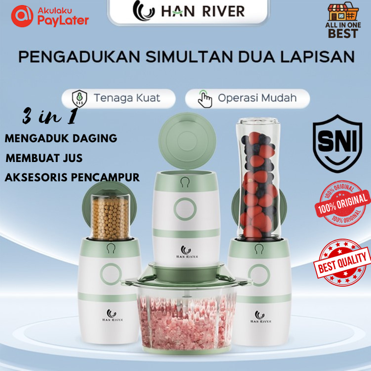 HAN RIVER Chopper Blender 5in1 Mesin Penggiling Daging Bumbu Serbaguna Kapasitas 2 L Low Watt Multifungsi Ber SNI
