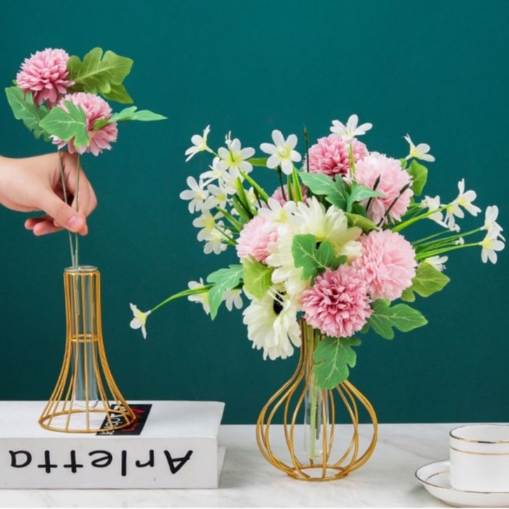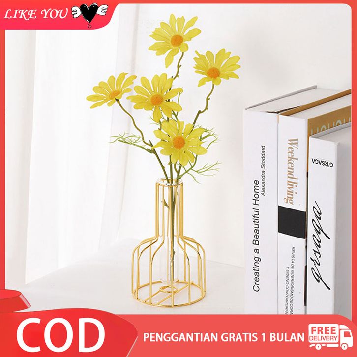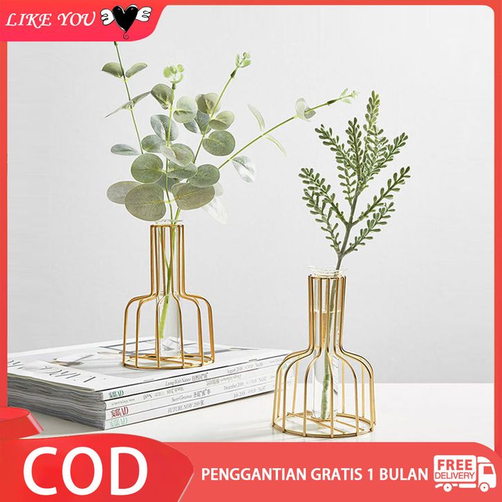 Nordic Golden Glass Vas Besi Hidroponik Tanaman Vas Bunga Meja Kedai Kopi Kantor Dekorasi Rumah Aksesoris Modern