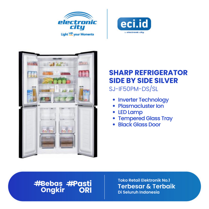SHARP KULKAS SIDE BY SIDE 4 PINTU 472 LITER - SJ-IF50PM-DS/SL