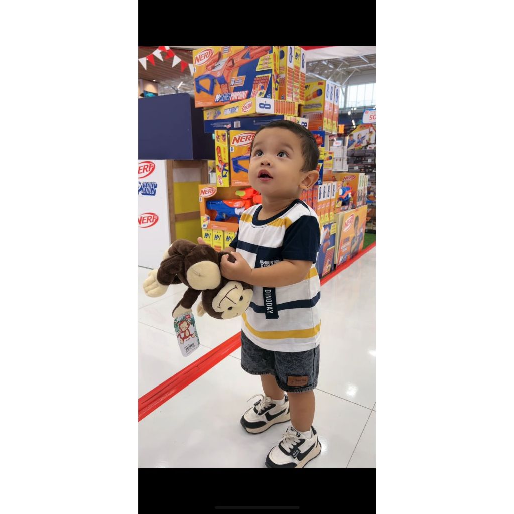 (FLASH SALE) ESTISHOP Setelan baju anak laki laki kaos salur katun 30s stripe bayi celana jeans pendek fashion