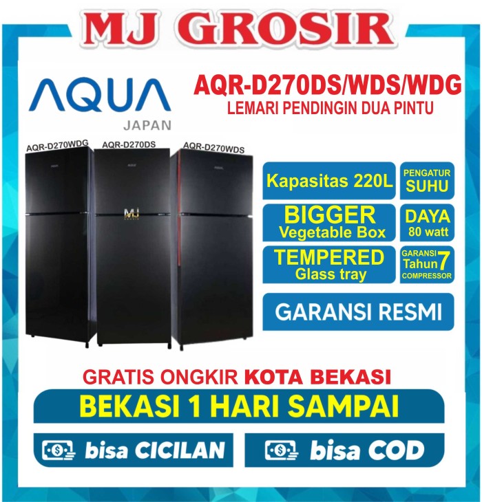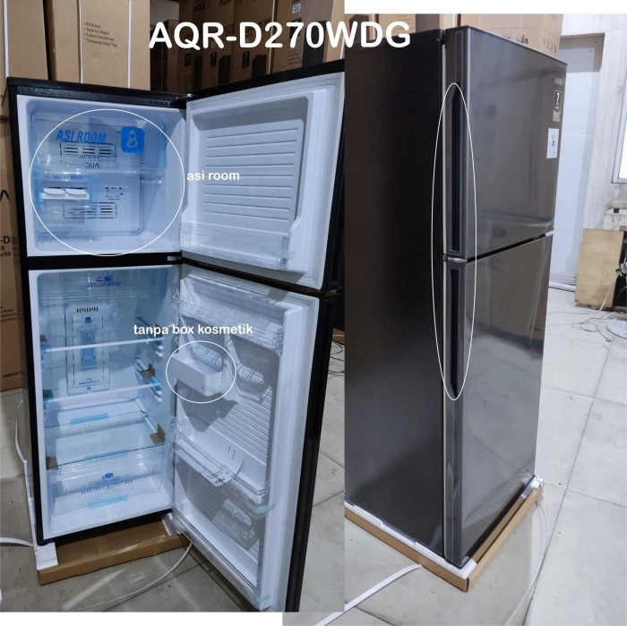 KULKAS AQUA JAPAN AQRD 270 LEMARI ES 2 PINTU AQRD270 LOW WATT - 270WDG ASI ROM, DUS BAWAAN