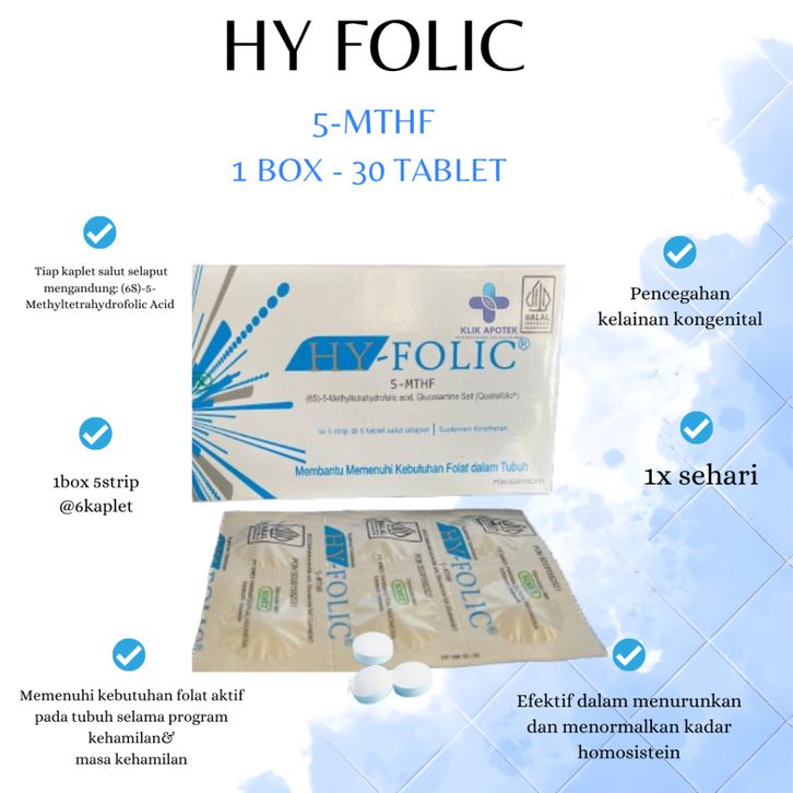 PROMO Hy-Folic | Suplemen Asam Folat untuk Ibu Hamil | Asam Folat generasi ke-4 (5-MTHF) | Isi 30 Tablet