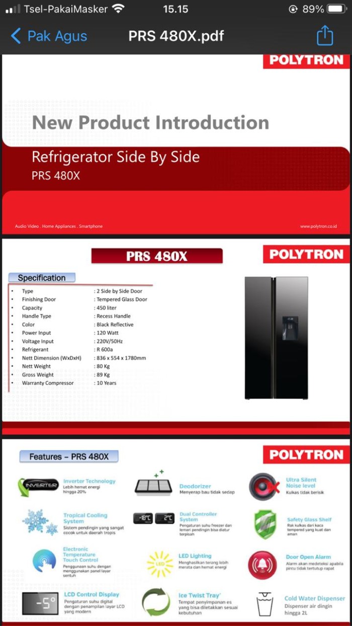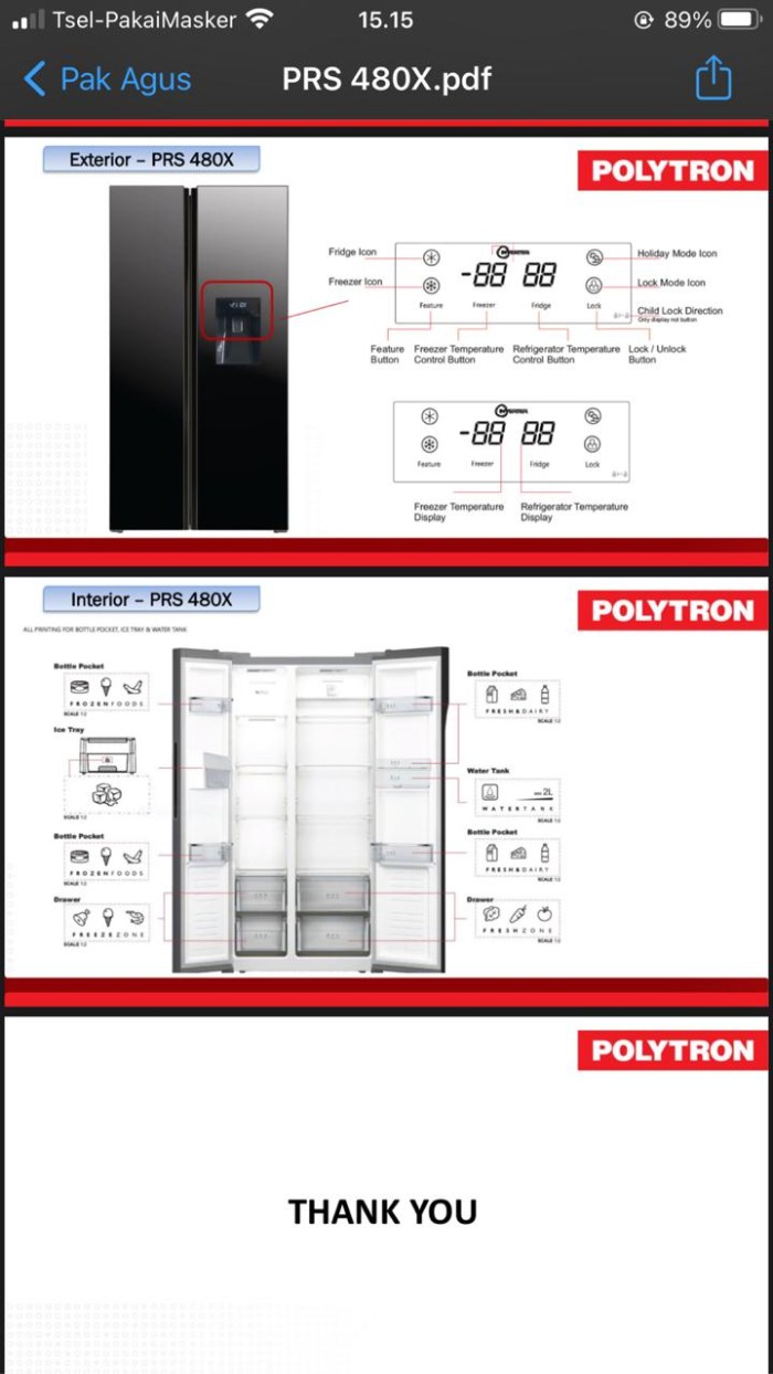 KULKAS POLYTRON PRS 480 LEMARI ES 2 PINTU PRS480 SIDE BY SIDE INVERTER - DUS BAWAAN
