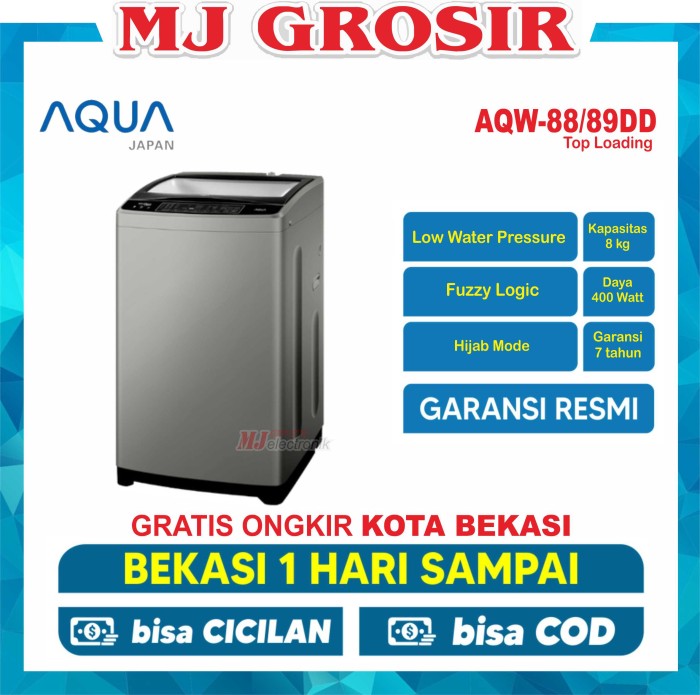 MESIN CUCI AQUA JAPAN AQW 88 DD / 89 DD 8KG 1 TABUNG T0P LOADING HIJAB - 88 DD, DUS BAWAAN