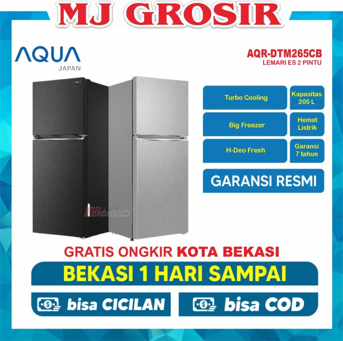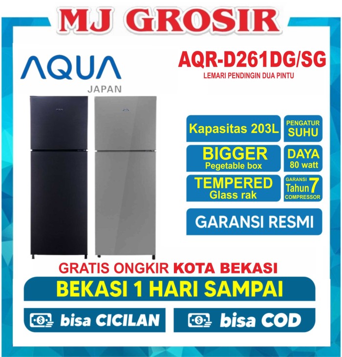 KULKAS AQUA JAPAN AQRD 261 LEMARI ES 2 PINTU AQRD261 LOW WATT - AQRD 261 DG/SG, DUS BAWAAN