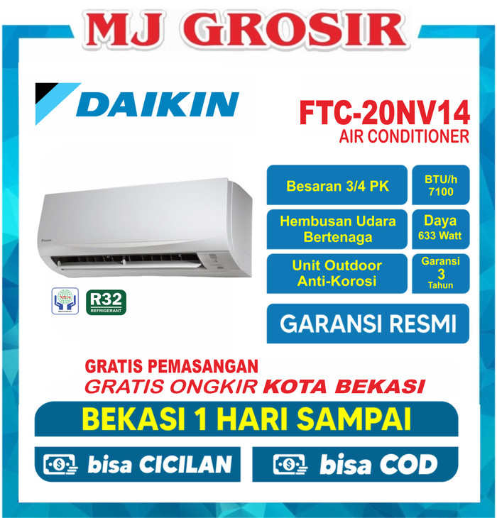AC DAIKIN FTC 20 NV14 RC 3/4 PK + PASANG R32 STANDARD THAILAND - DUS BAWAAN